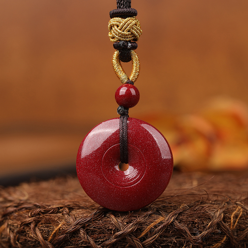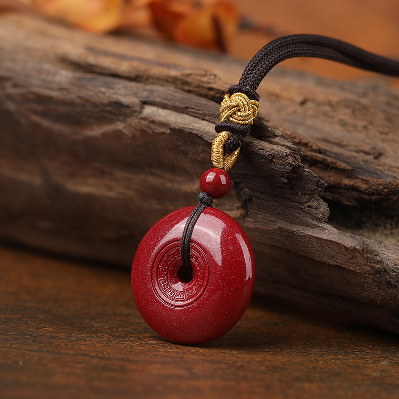 天然朱砂平安扣吊坠男女款项链挂件护身符本命年挂饰情侣款