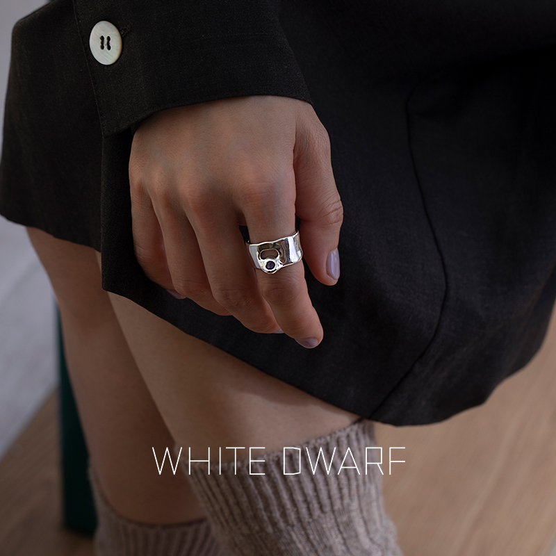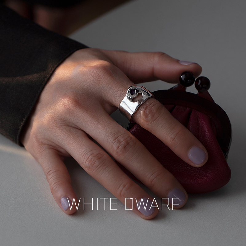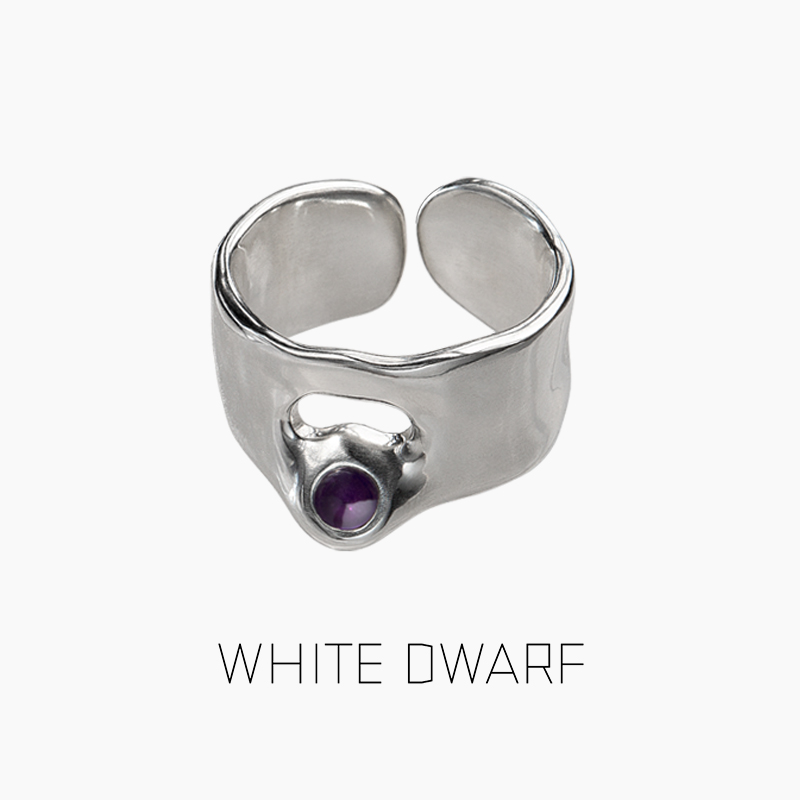 WHITE DWARF白矮星向内戒指紫水晶925银原创天然石女高级感可调节