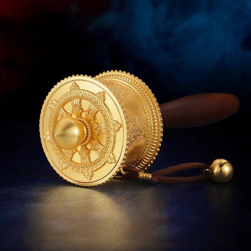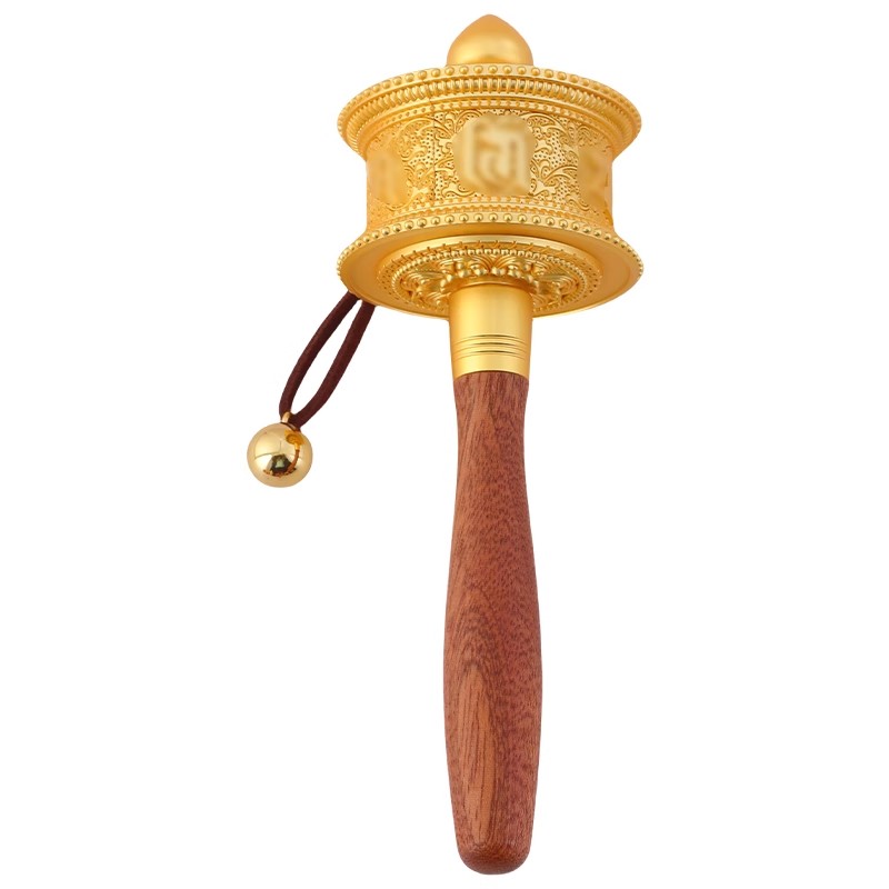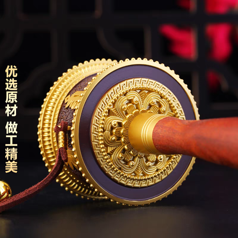 德田新款手摇转金轮手持静音手动转轮六字观音办公转金筒桌面摆件
