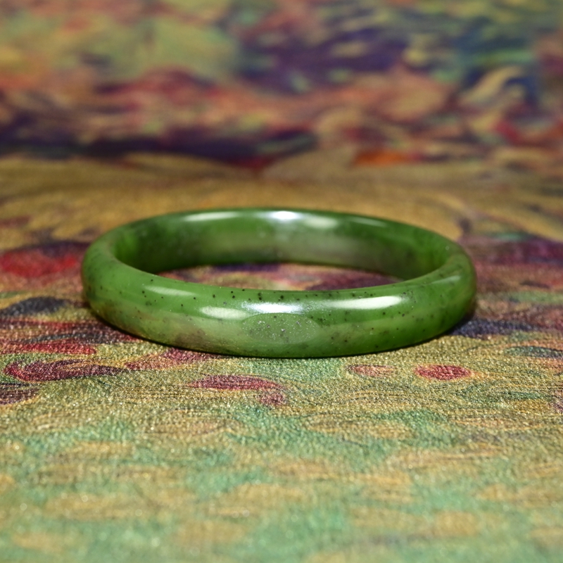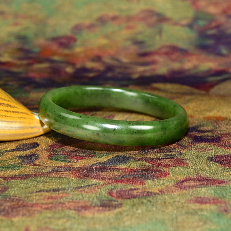 紫润轩新疆和田玉碧玉籽料手镯菠菜绿哑光51MM留皮天然籽镯收藏级