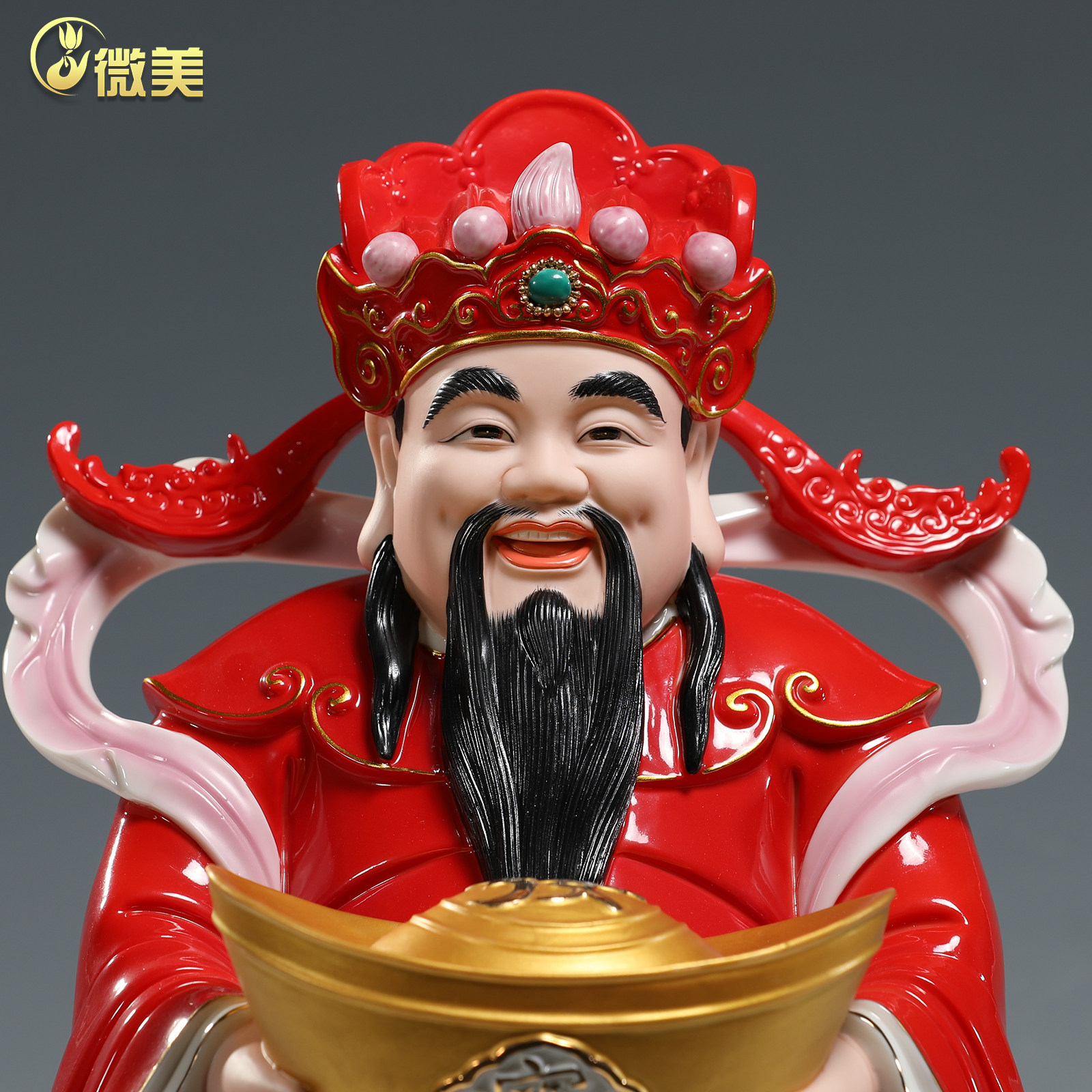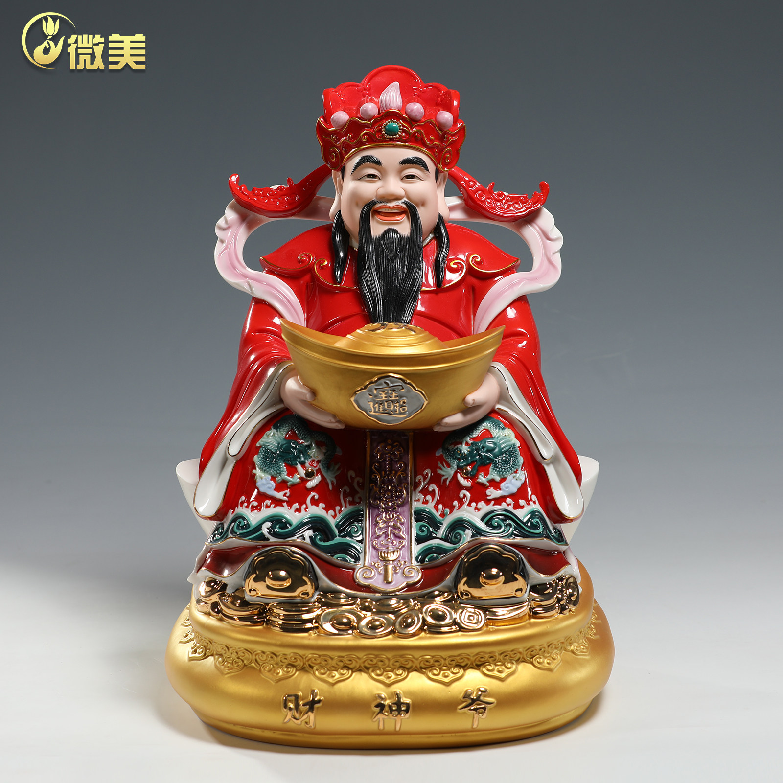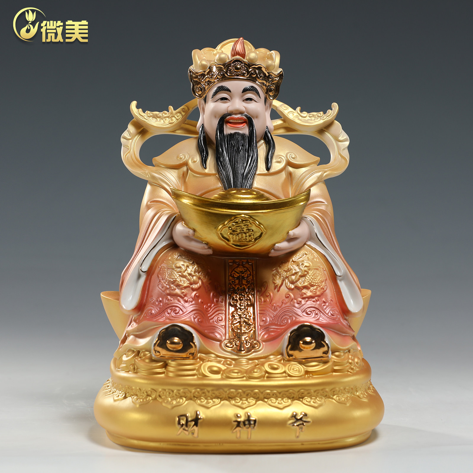 微美陶瓷12寸16寸聚宝盆财神爷佛像文财神店铺客厅家用供奉佛像