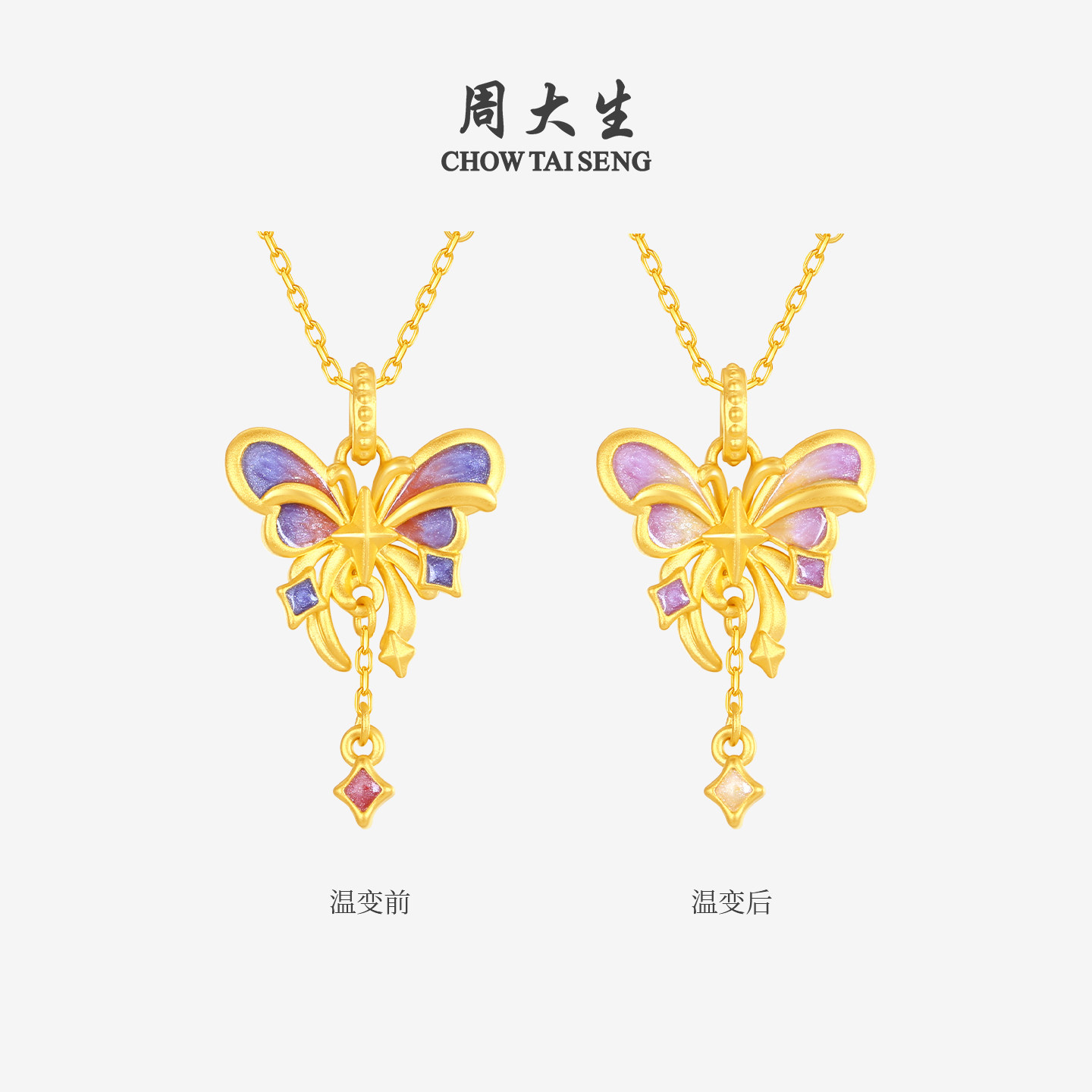 周大生黄金吊坠女款足金硬金鎏光蝶梦挂坠配项链送女朋友生日礼物