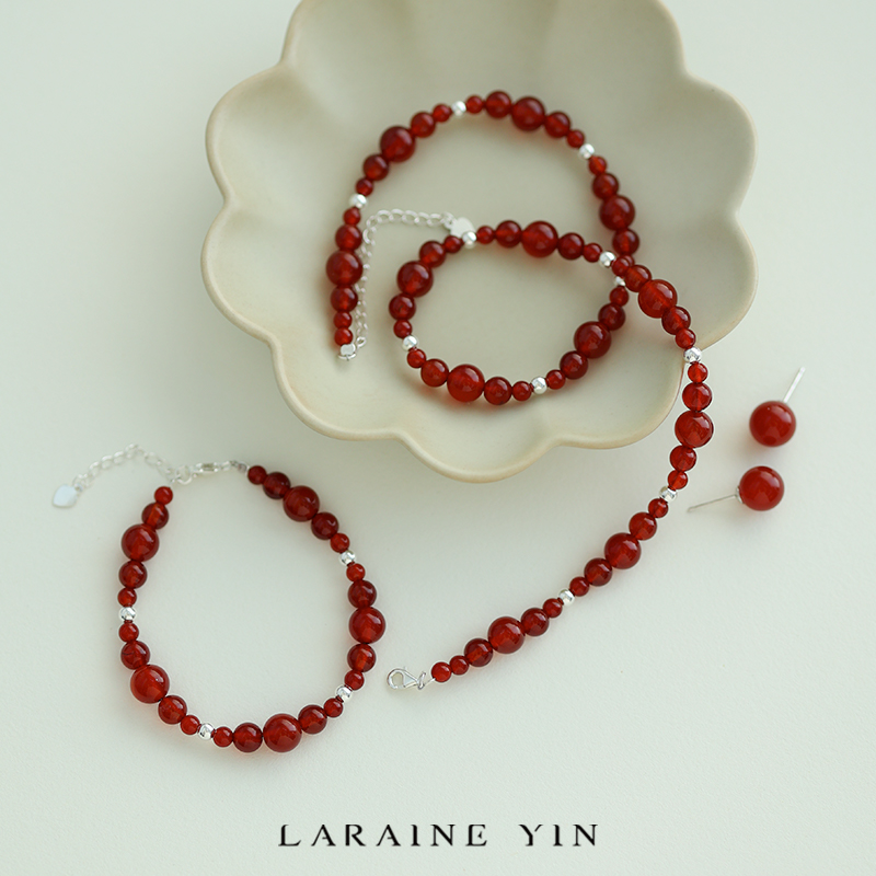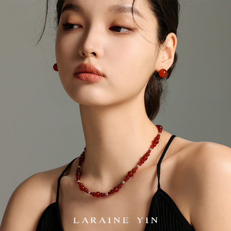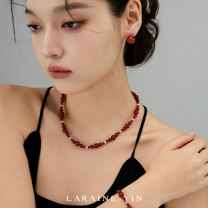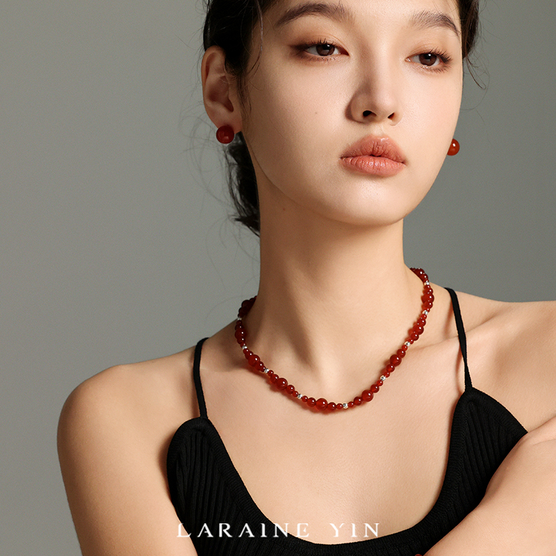 复古新中式纯银项链红玛瑙渐变串珠项链s925银颈链显白锁骨链