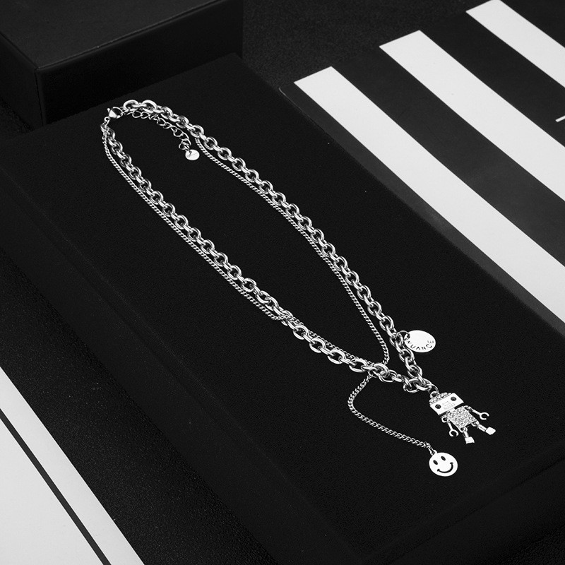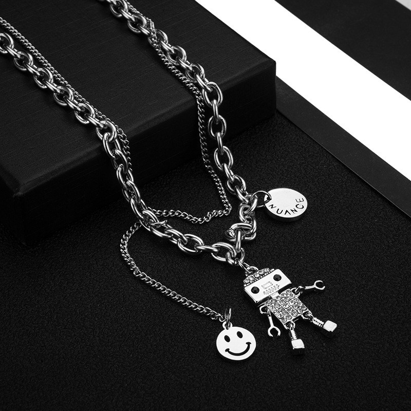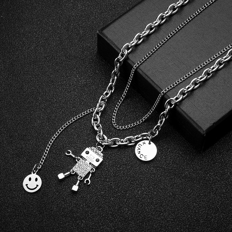 新款可动机器人项链男女情侣潮ins嘻哈百搭锁骨链卫衣配饰毛衣链