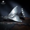 白木黑冰原创设计鲸落鲸鱼尾925纯银个性复古开口戒指男女情侣戒