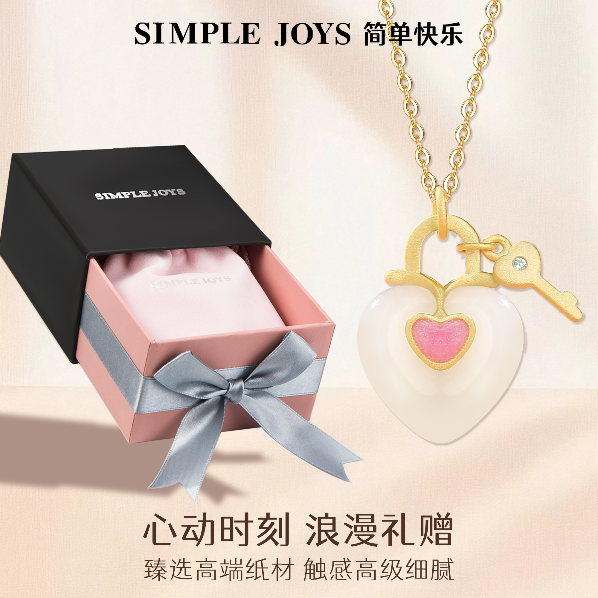 SIMPLEJOYS轻奢心锁和田玉s925纯银项链女爱心吊坠新中式风送女友