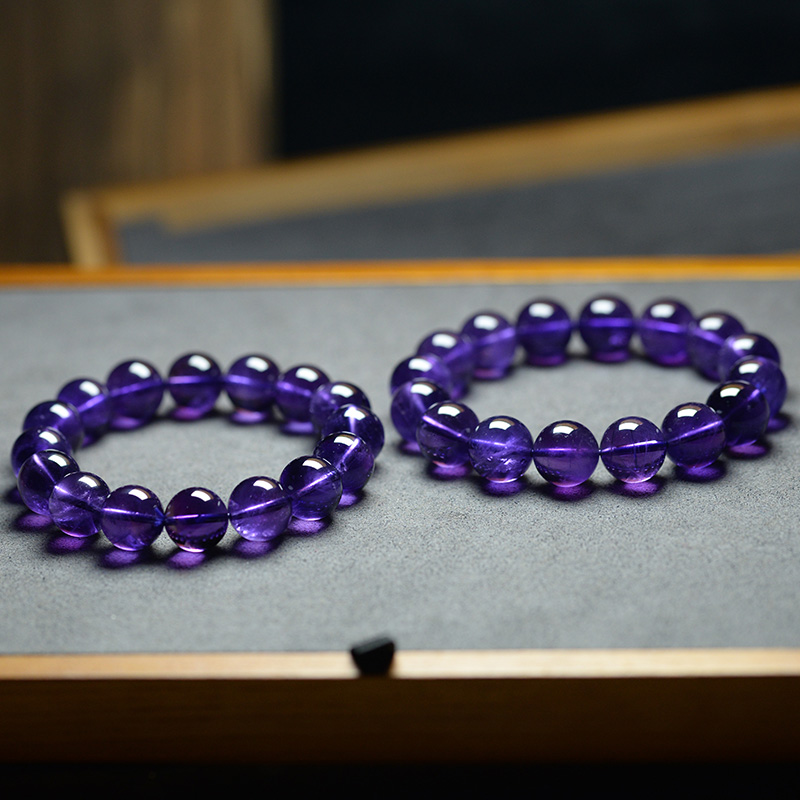 天然紫水晶手链乌拉圭深紫色单圈紫晶手串冰透大颗紫色水晶首饰