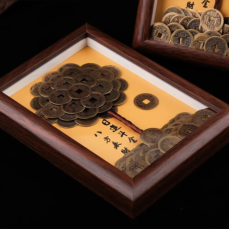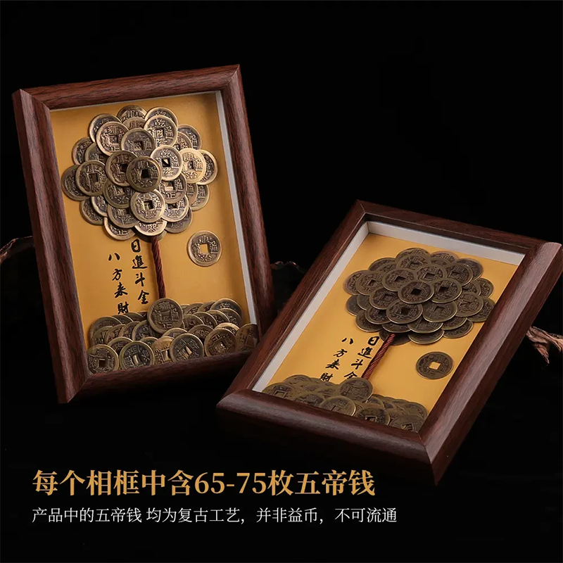 五帝钱发财树相框摇钱树摆件铜钱装饰画办公桌面复古成品招财摆件