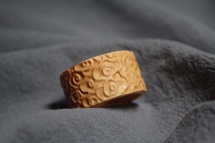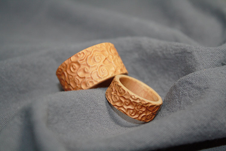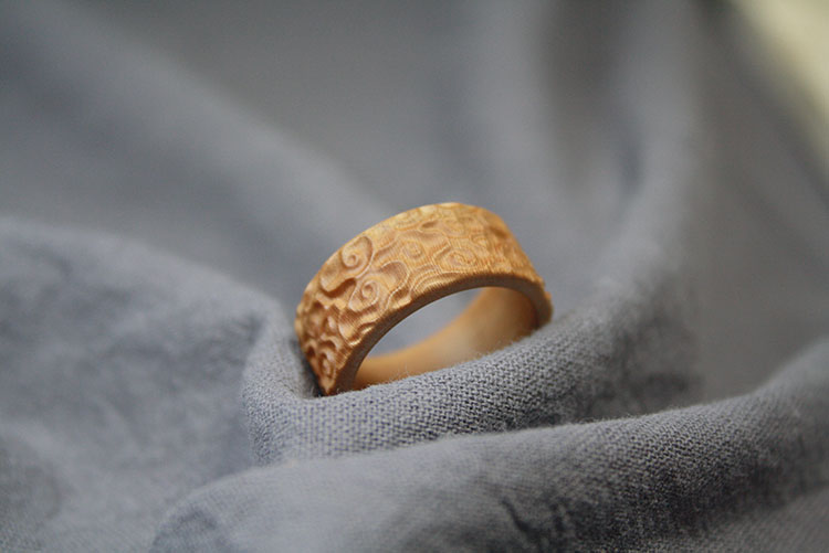 缘起藏墨定制桃木雕刻祥云戒指扳指文玩手串跑环免费刻字生日礼物