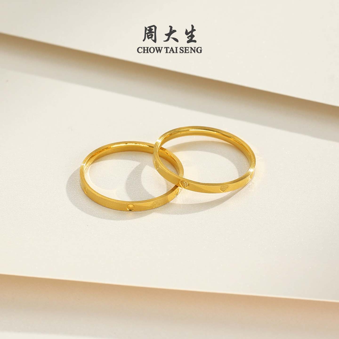 圣诞礼物周大生黄金戒指女足金5G钻纹素圈订婚指环时尚手饰送女友