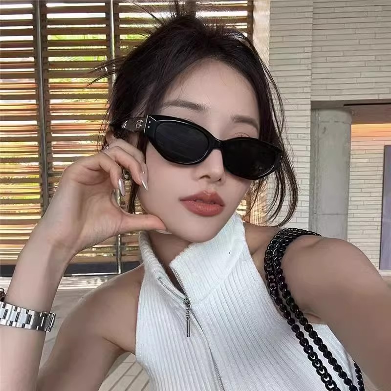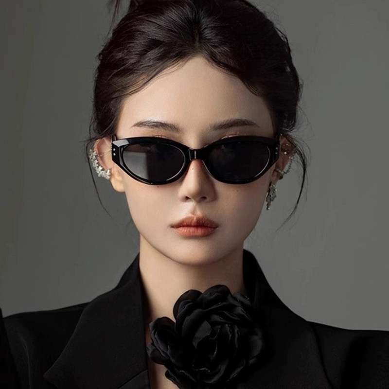 y2k千禧风墨镜女2024新款黑色复古小脸太阳镜女圆脸遮阳偏光椭圆