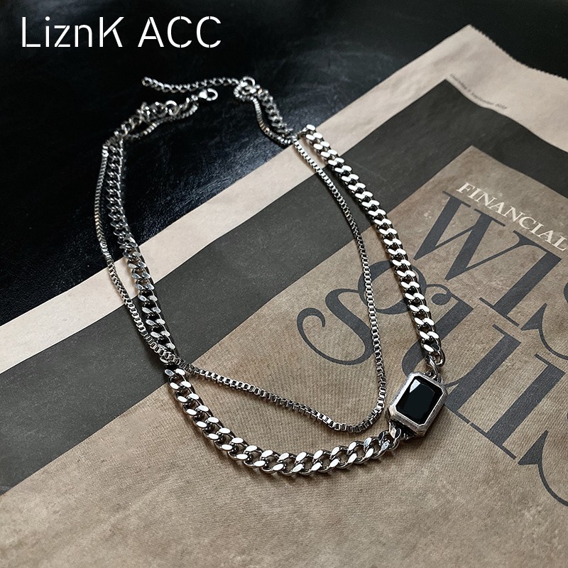钛钢几何黑色黑色项链女双层叠戴轻奢小众设计感毛衣链秋冬高档