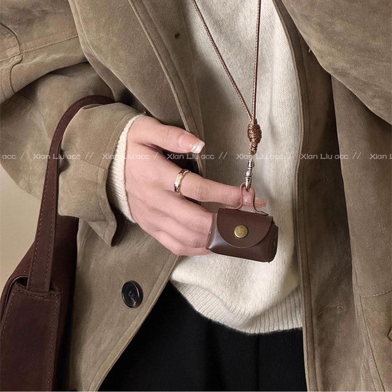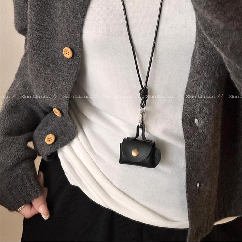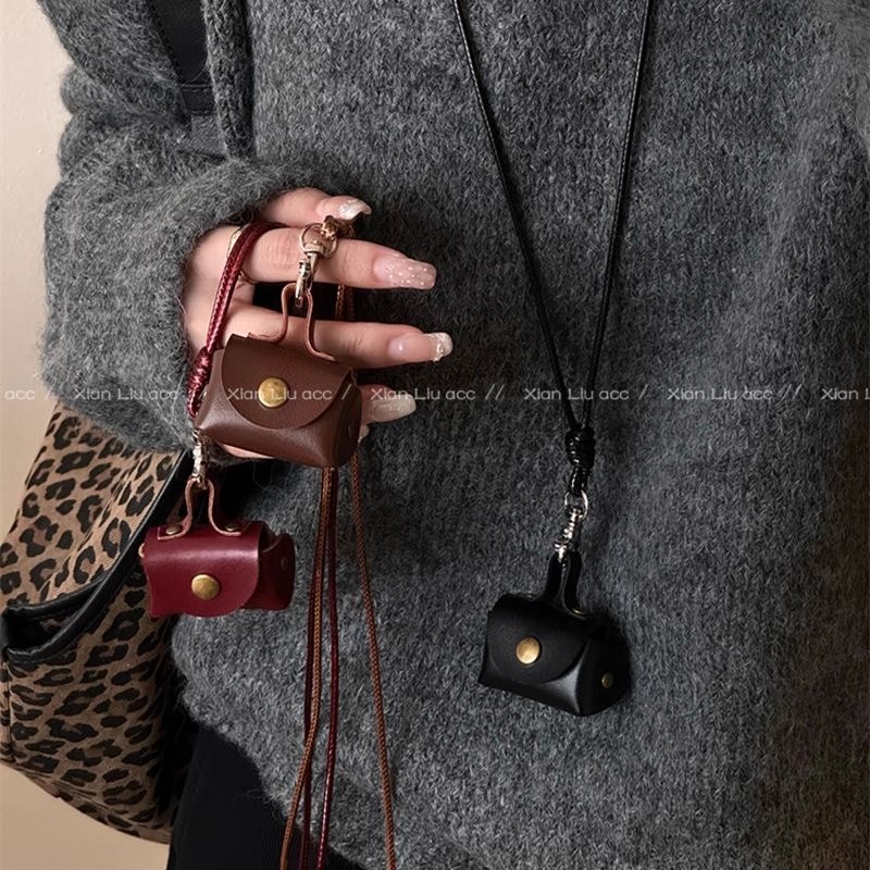 小巧可爱皮质零钱包项链女挂件耳机套皮绳毛衣链长款配饰收纳包包