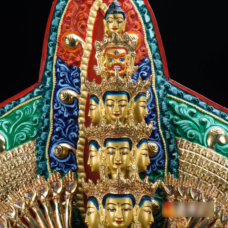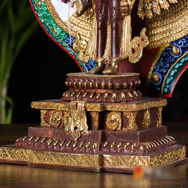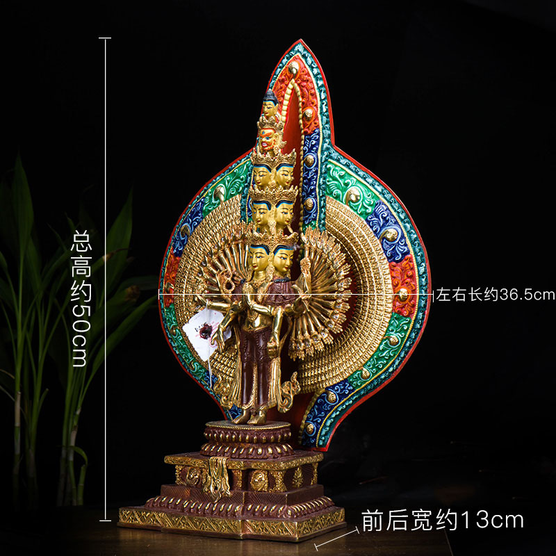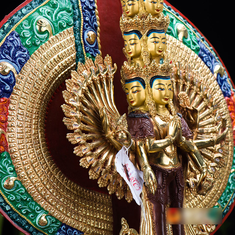 现代工艺品铜像摆件尼泊尔15寸铜半鎏金彩绘手工千手观音铜像