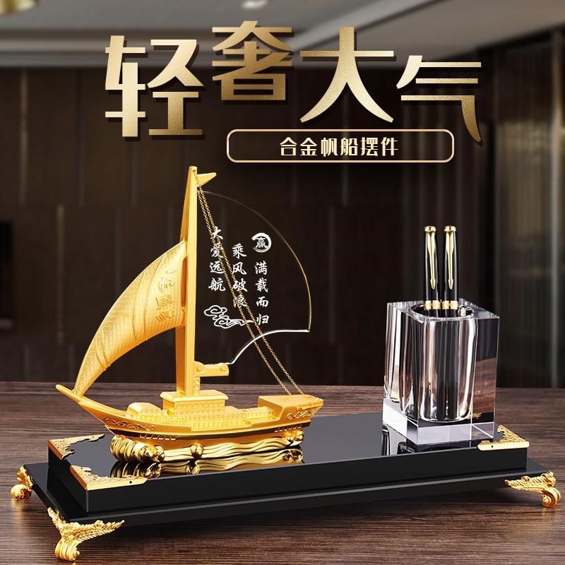 中考加油励志礼品吉祥物一帆风顺帆船摆件高档老板办公室桌面装饰