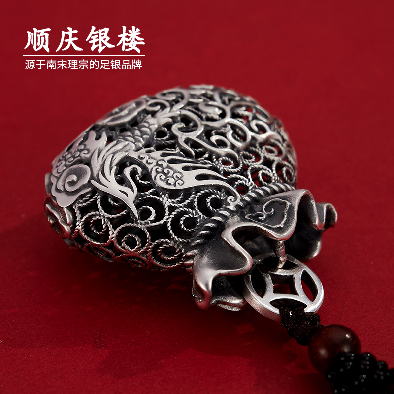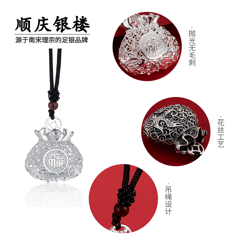 顺庆银楼S999纯银吊坠新中式花丝福袋足银挂件车载礼物纪念送爱人