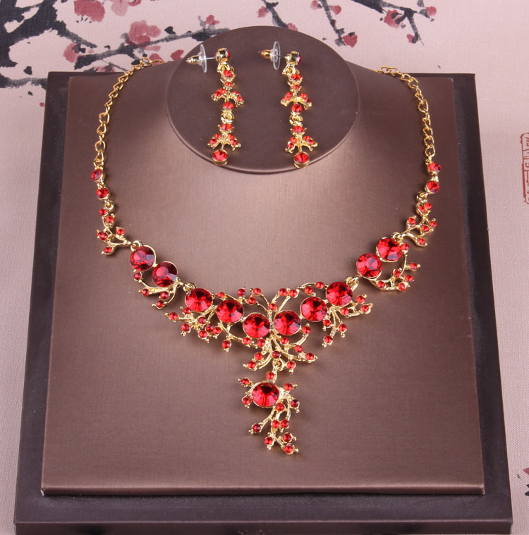 新娘红色项链耳环二件套装韩式简约水钻结婚项链婚纱配饰品包邮