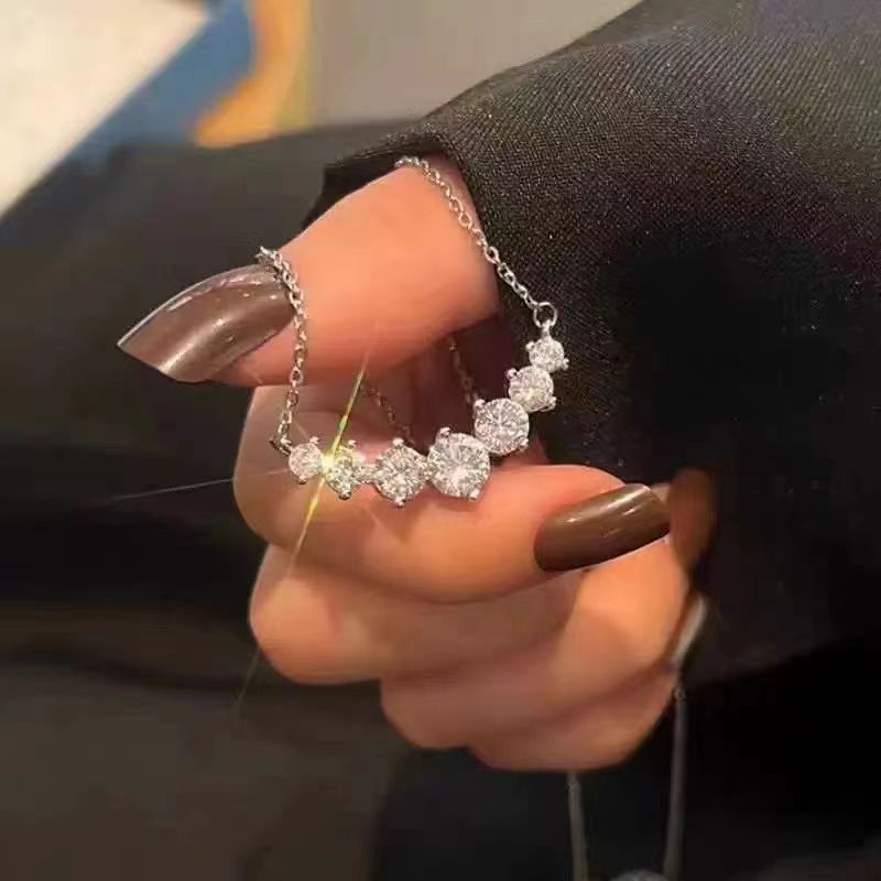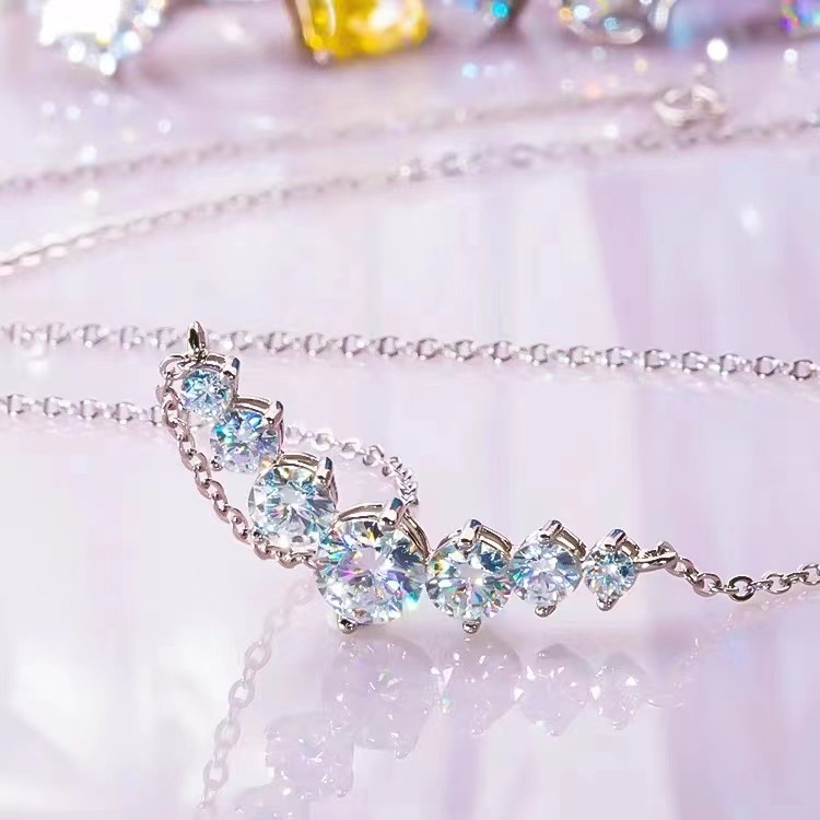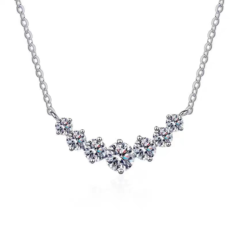 纯铂金镶嵌进口D色莫桑石七排钻微笑项链PT950时尚简约新款锁骨链