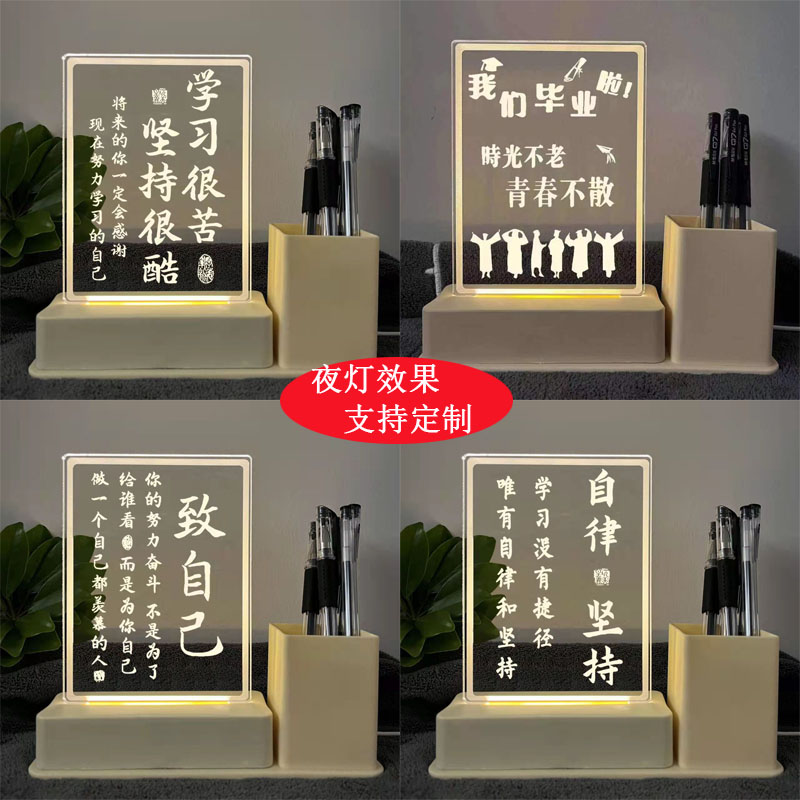 笔筒小夜灯座右铭学习很苦励志送老师儿童节毕业礼物桌面装饰摆件