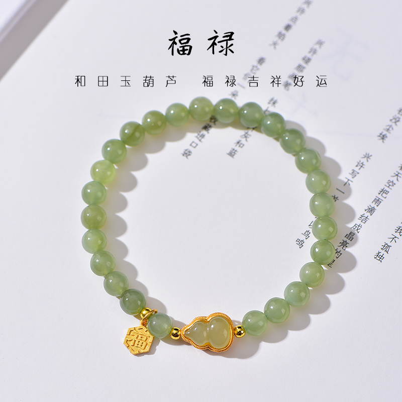 天然和田玉手链金镶玉葫芦帝王朱砂手串生日礼物送女友送父母礼物