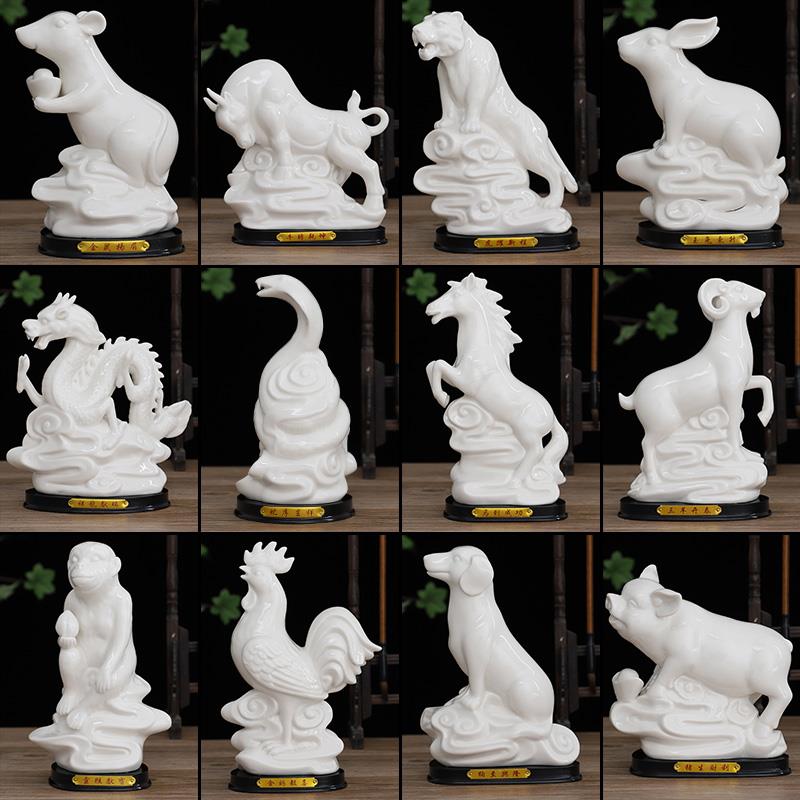 陶瓷十二生肖摆件白色全套鼠牛龙蛇马羊猴鸡狗猪客厅招财风水家居