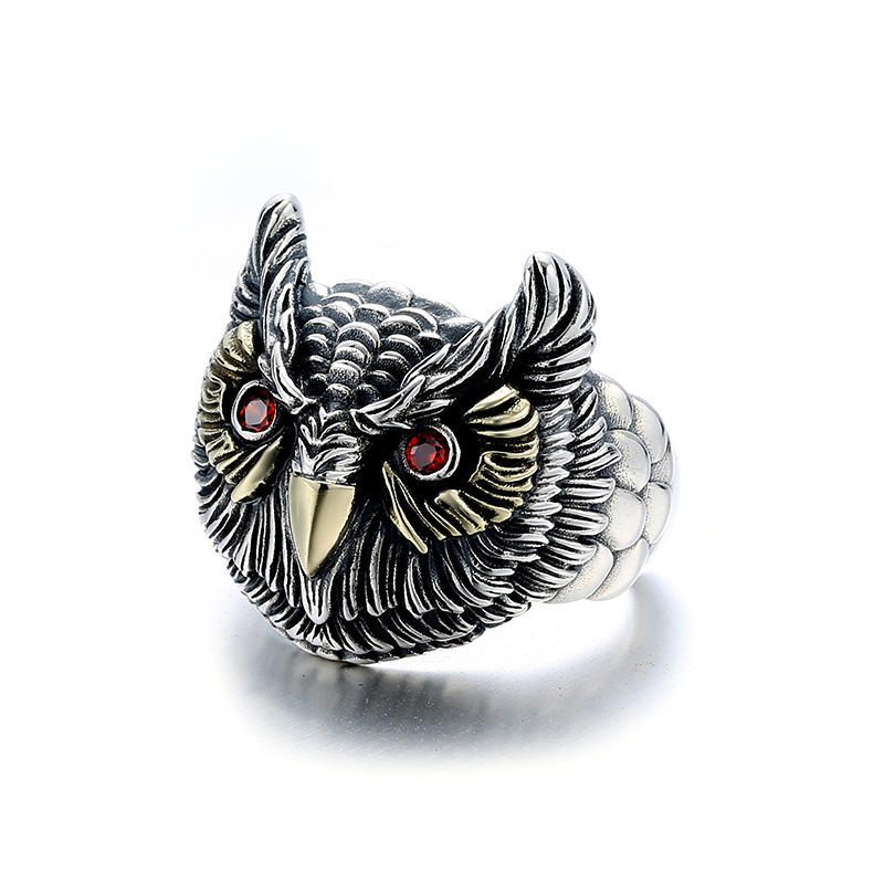 DAMAI 国潮风戒指复古做旧猫头鹰指环个性霸气男士食指戒轻奢小众