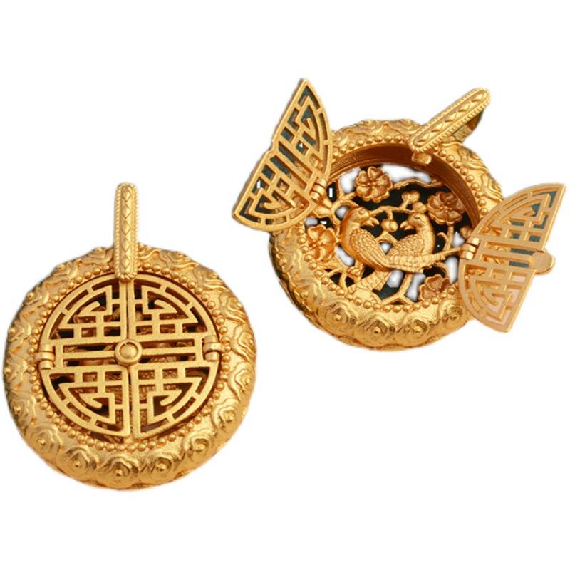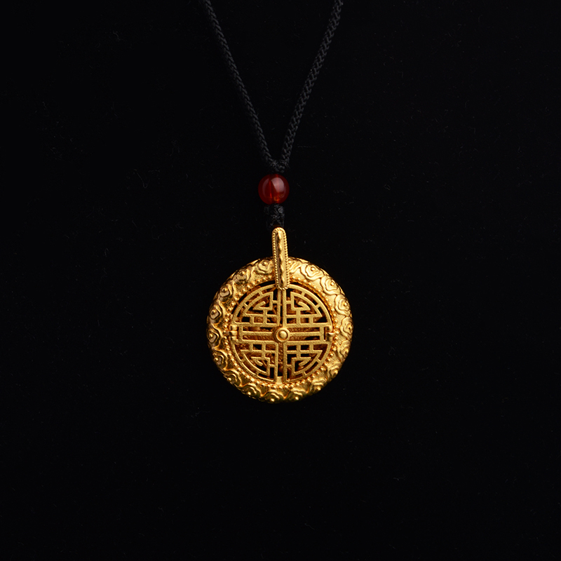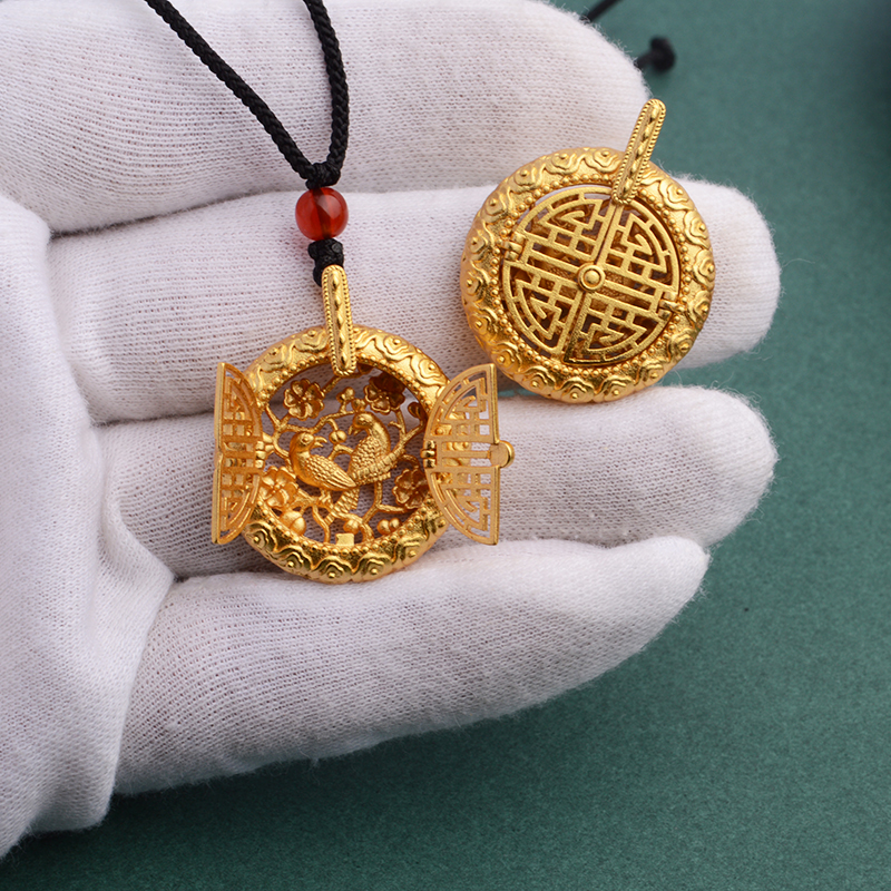 金店同款开门见喜项链男女饰品雕花镂空挂件吊坠复古毛衣链坠子