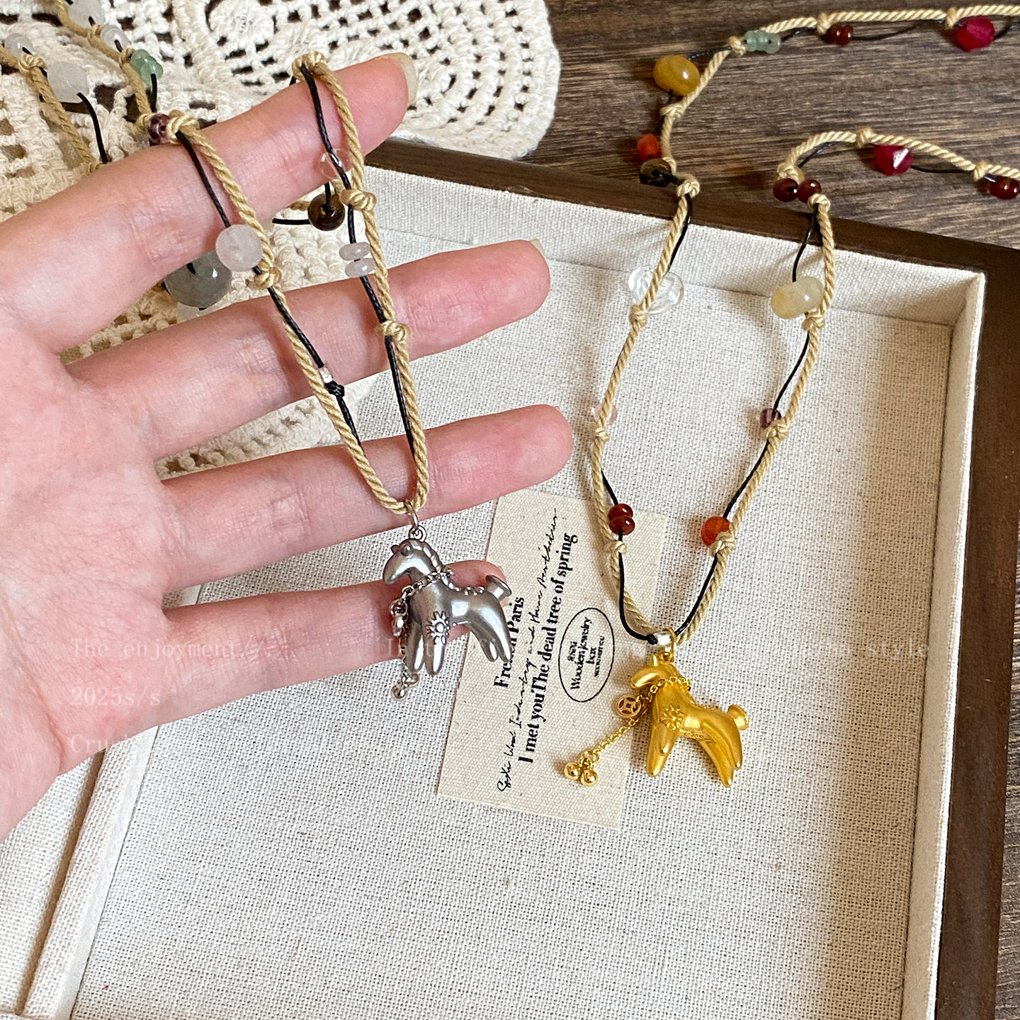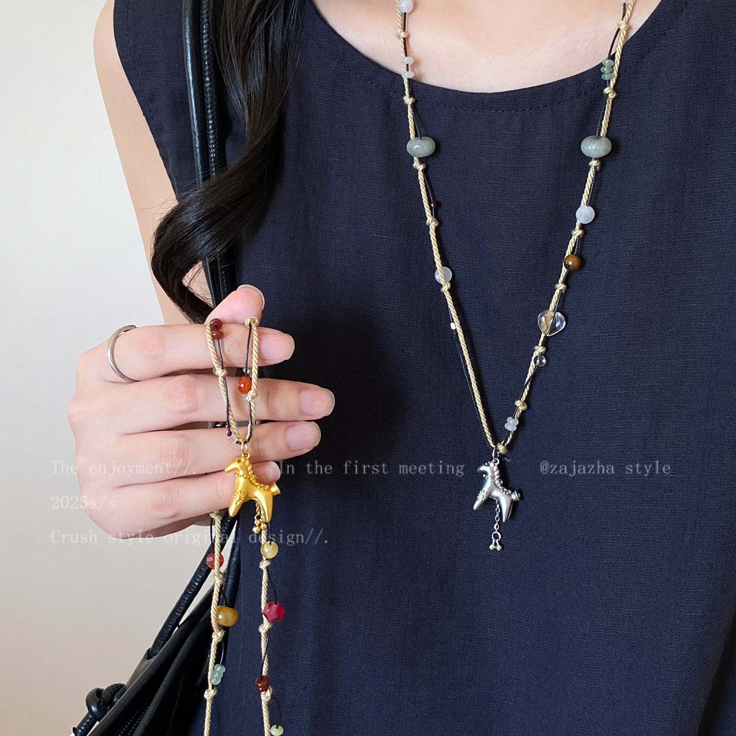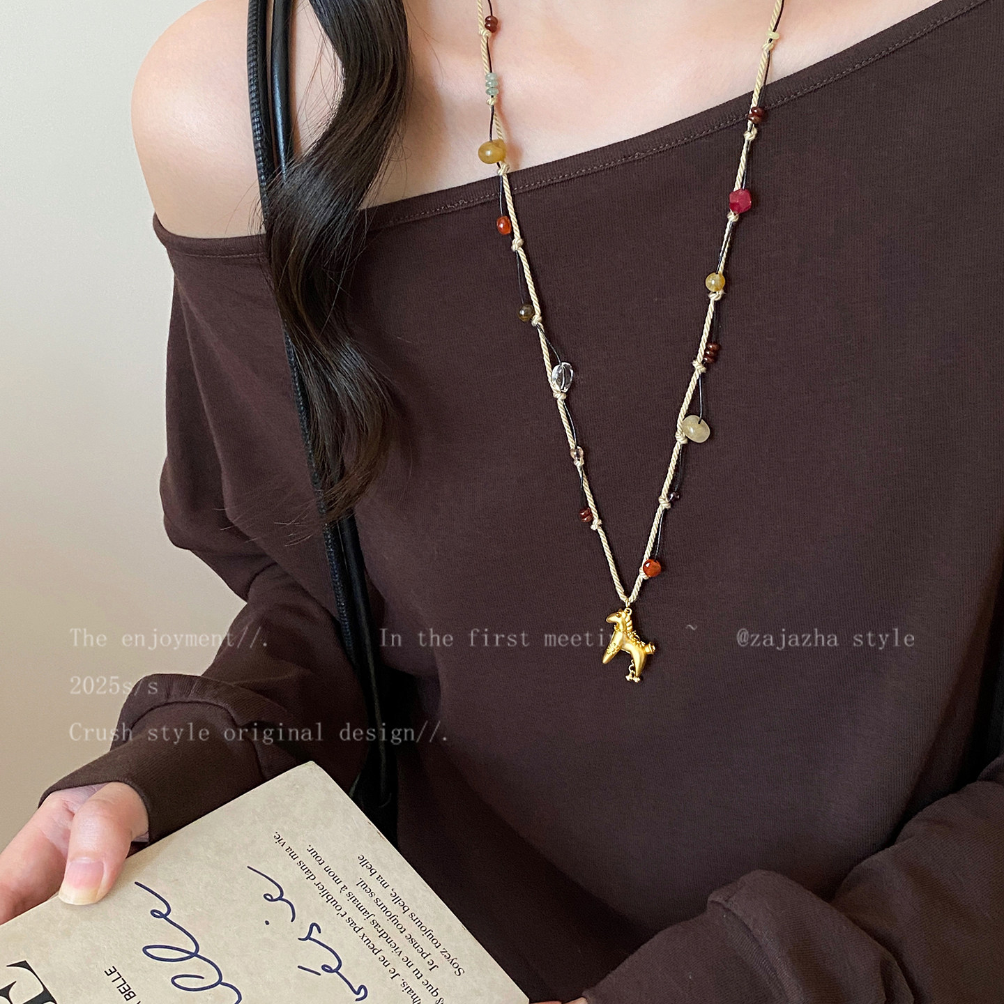 2025新款马上有钱编织绳项链女复古小众设计高级感毛衣链长款配饰