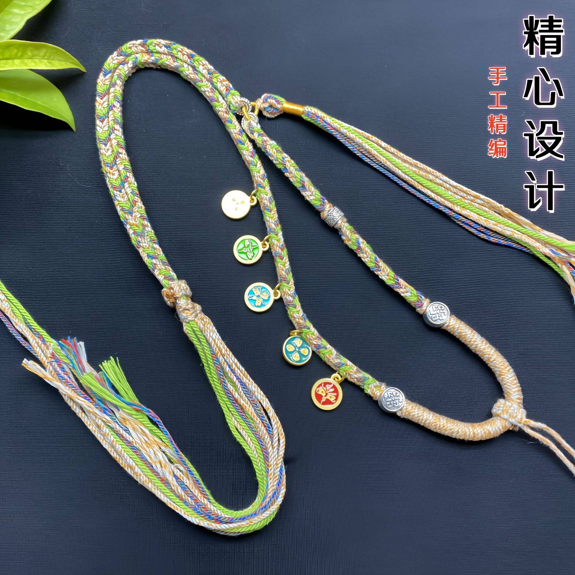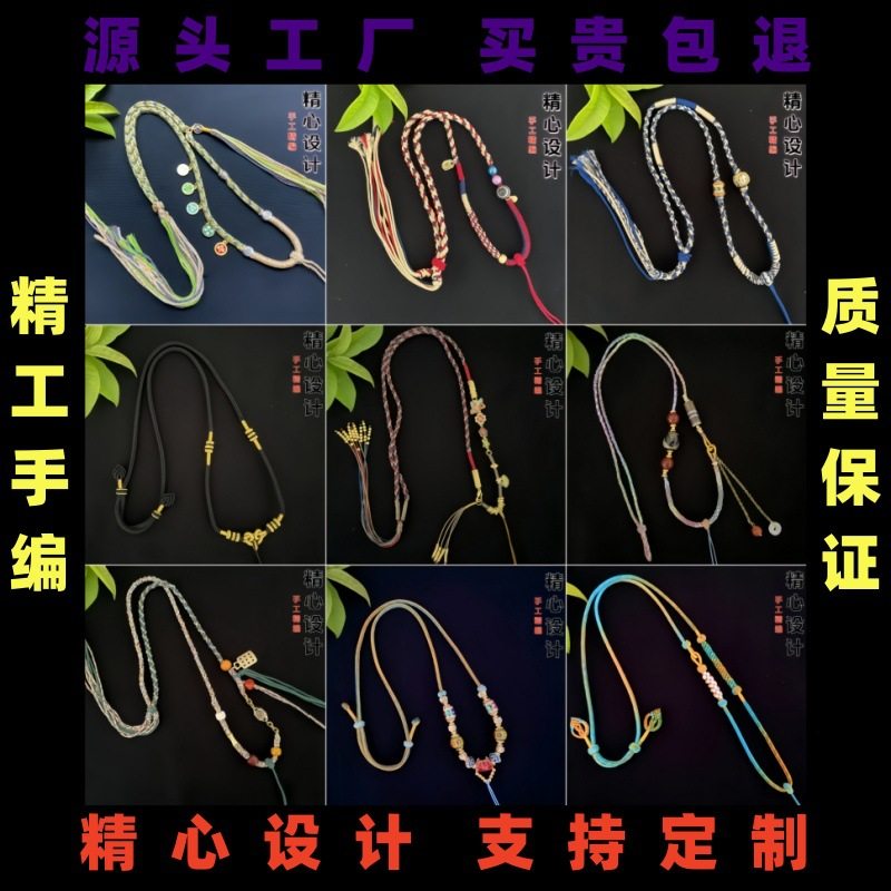 藏式手工编织项链绳蜜蜡佛牌唐卡和田玉翡翠吊坠挂绳可调节挂
