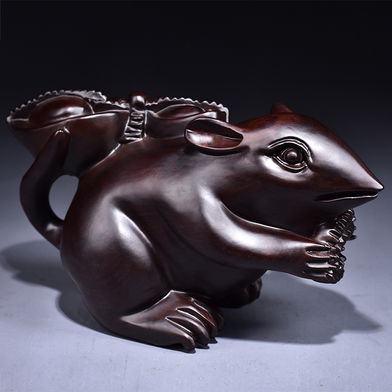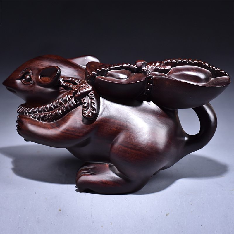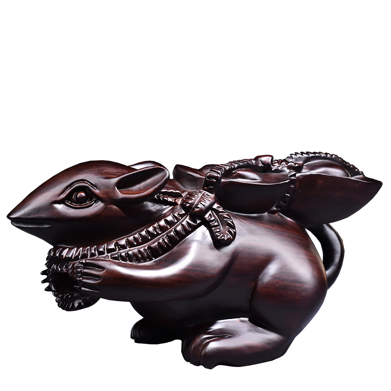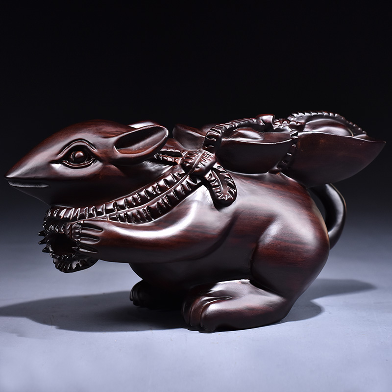 黑檀木雕老鼠摆件实木十二生肖鼠家居客厅装饰红木工艺品开业送礼