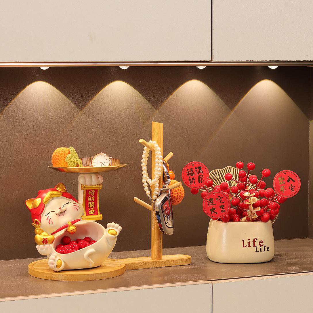 大肚招财猫入户玄关钥匙收纳摆件创意家居客厅鞋柜装饰品乔迁礼物