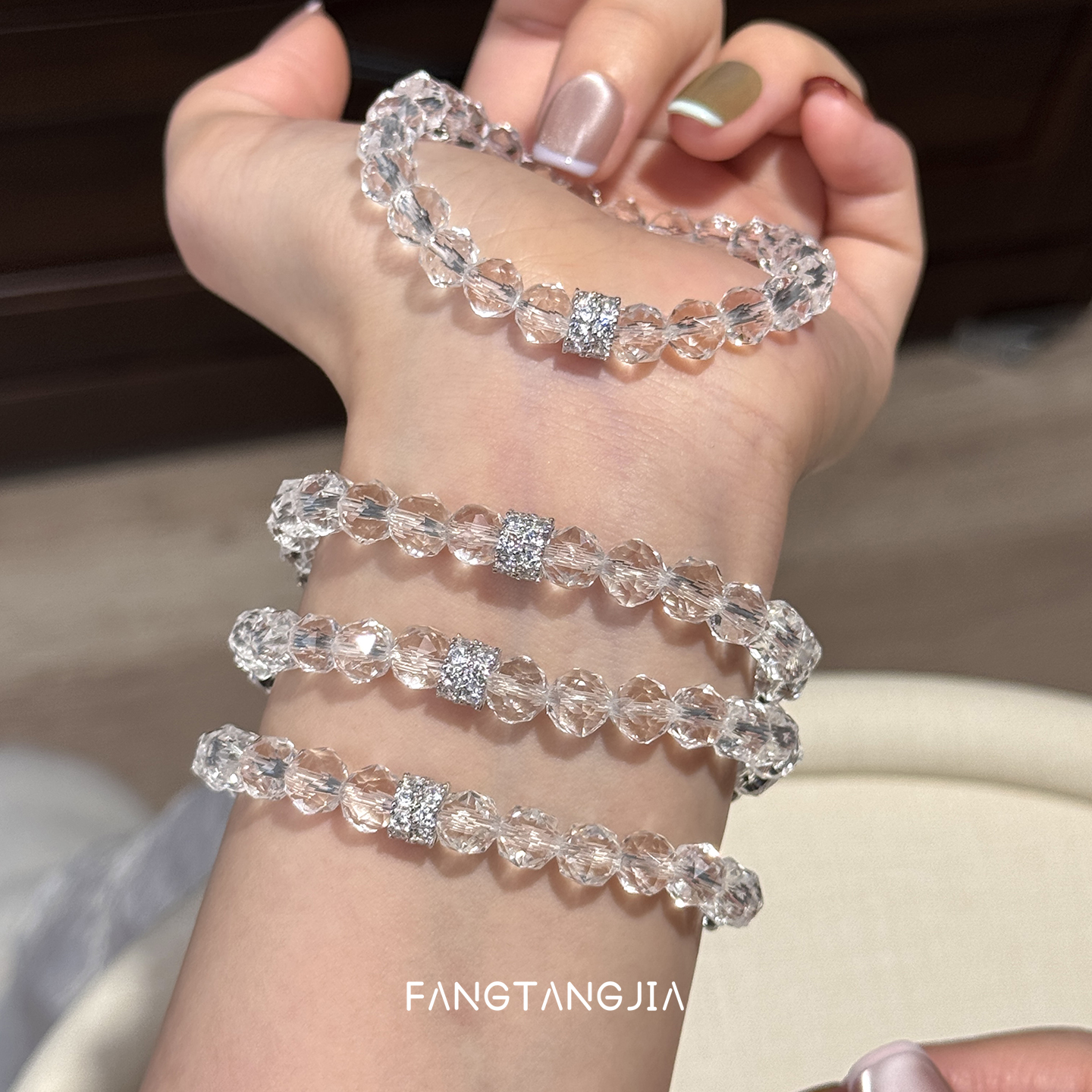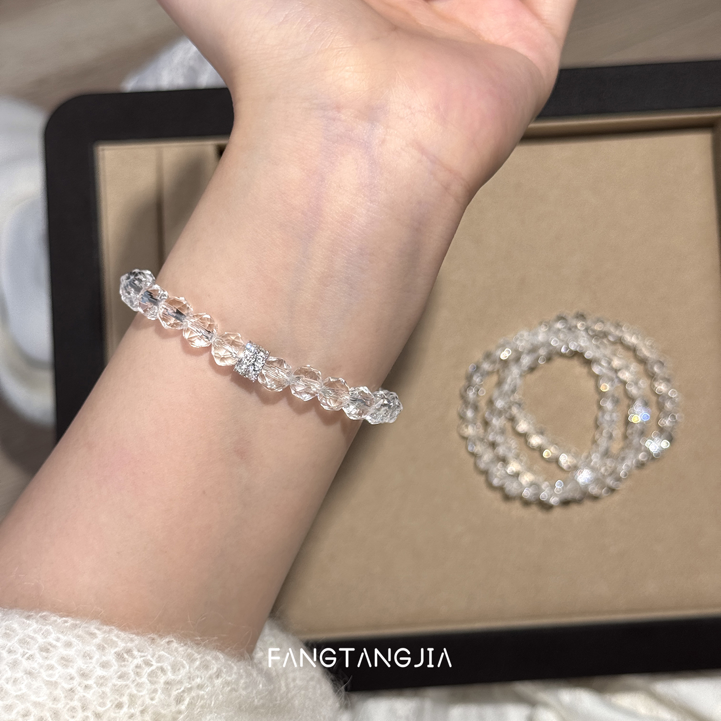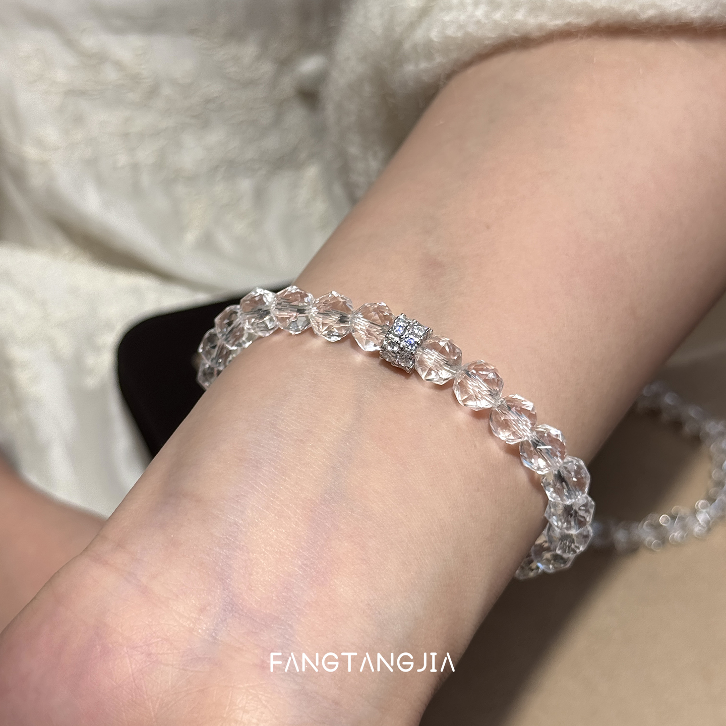 方糖家 天然双A刻面白水晶纯银手串轻奢高级感小众手链女款新款