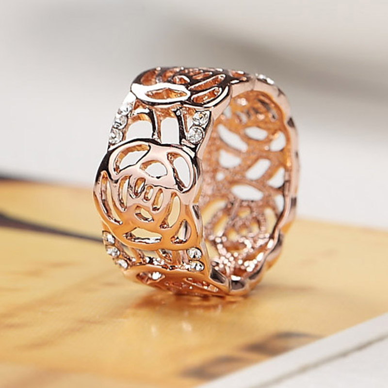 戒指女玫瑰金时尚山茶花韩版个性镂空食指网红指环潮ins潮酷戒子