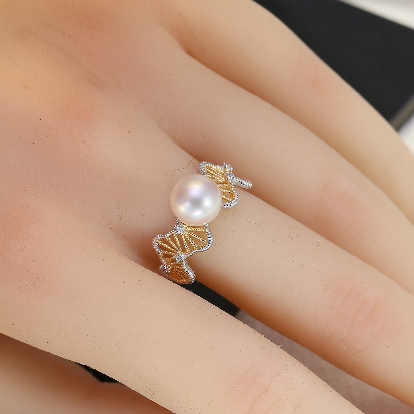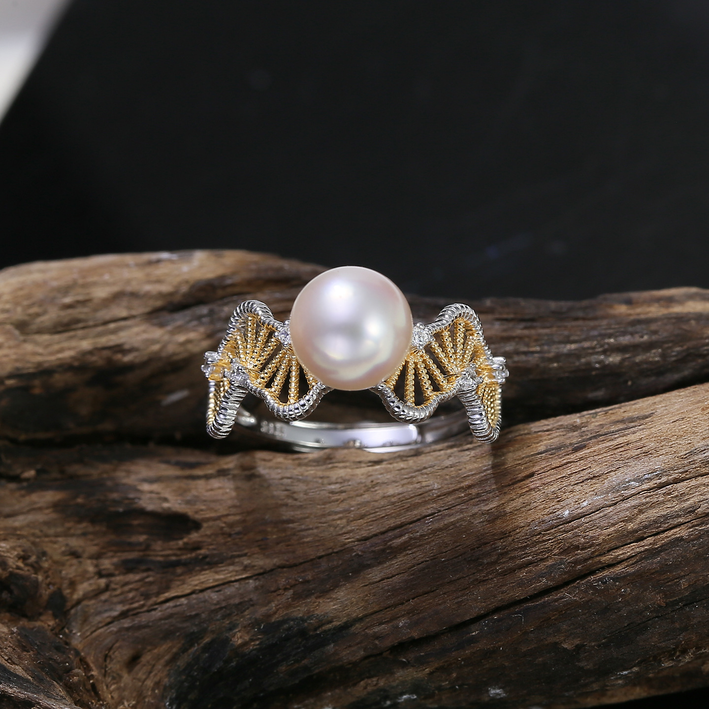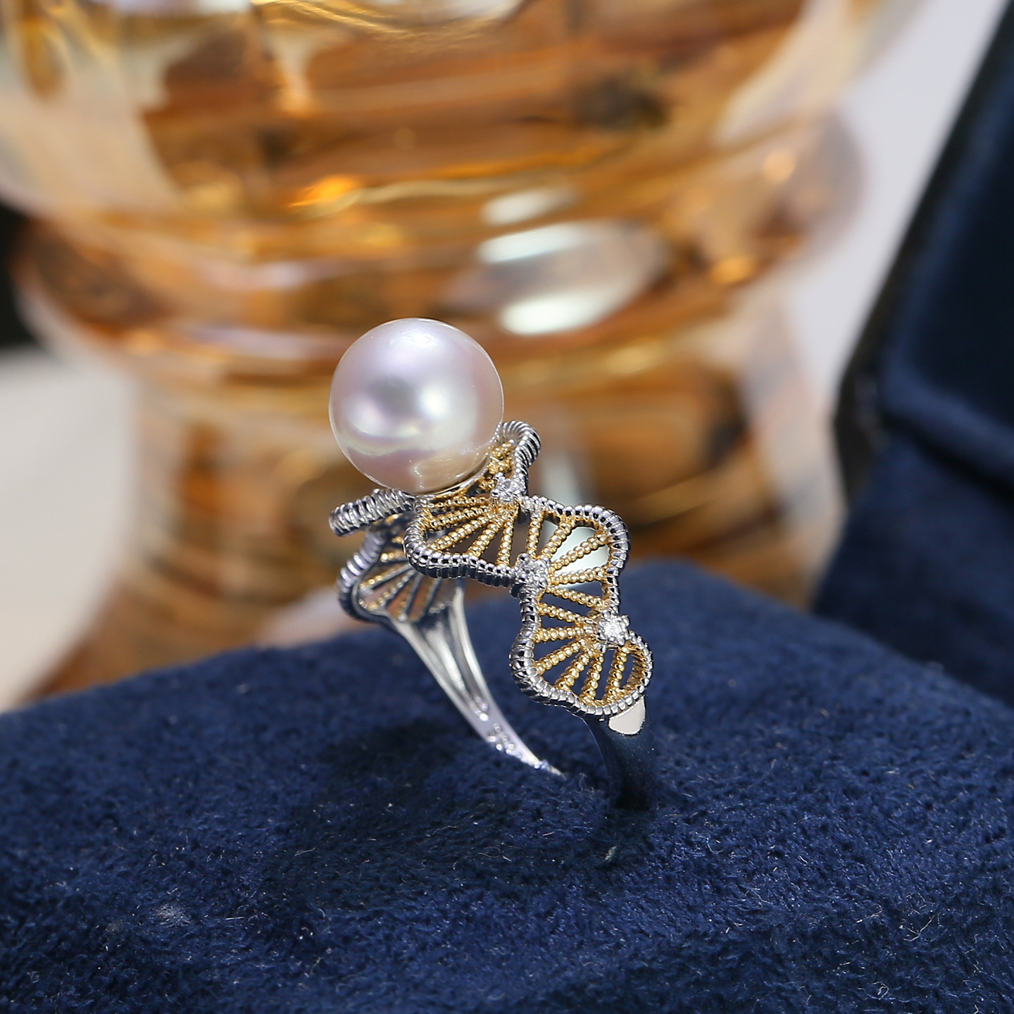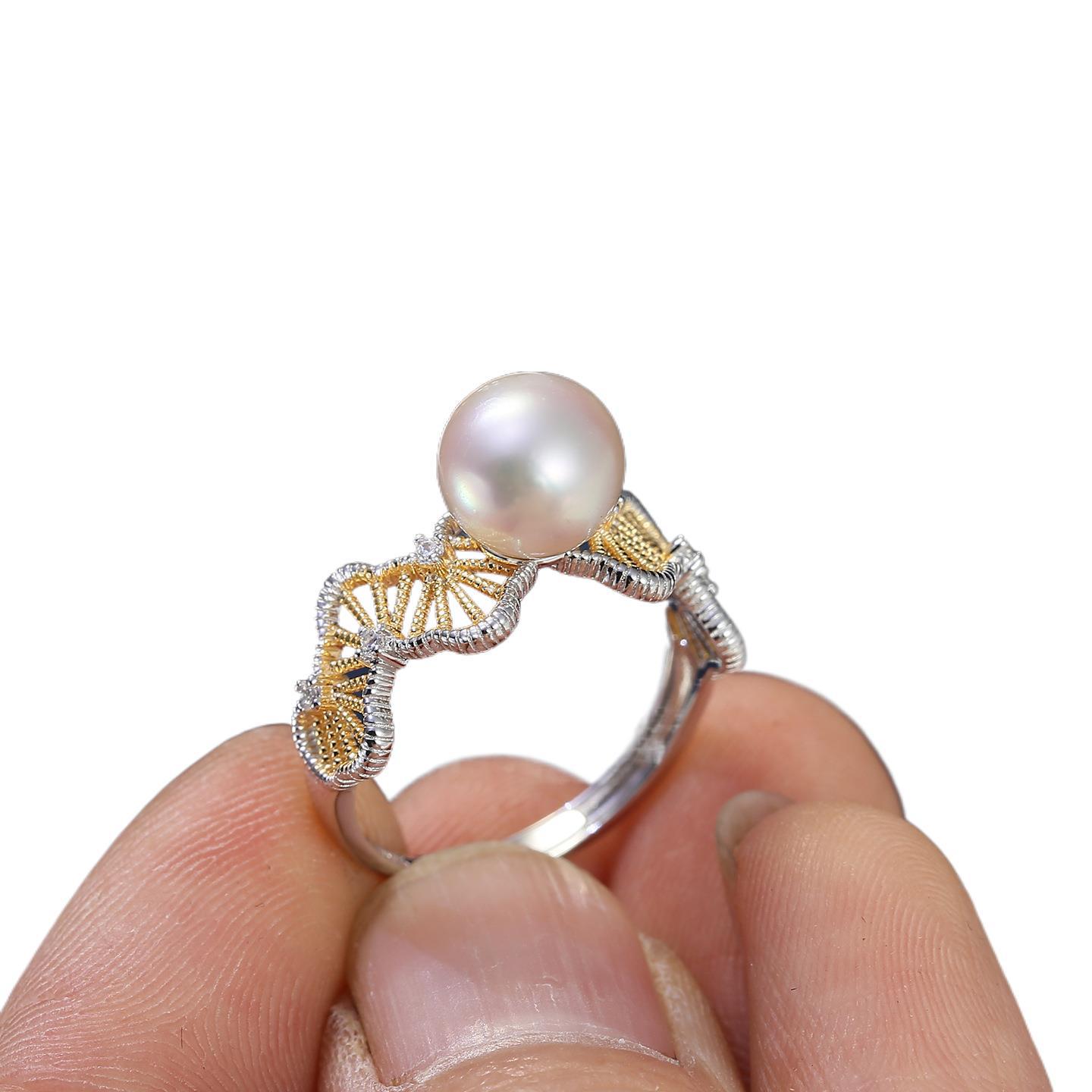 DIY配件 S925纯银双色珍珠戒指空托配饰洋气轻奢指环戒托材料7-10