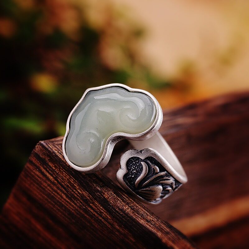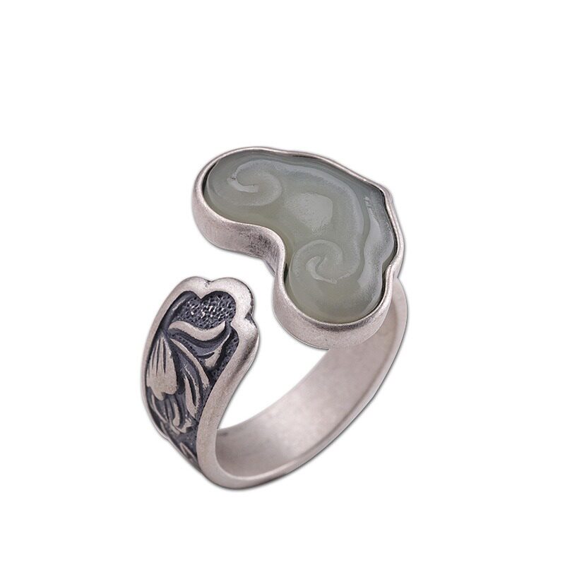 如意和田玉925纯银女复古大食指戒指环高端独特设计师感款中国风