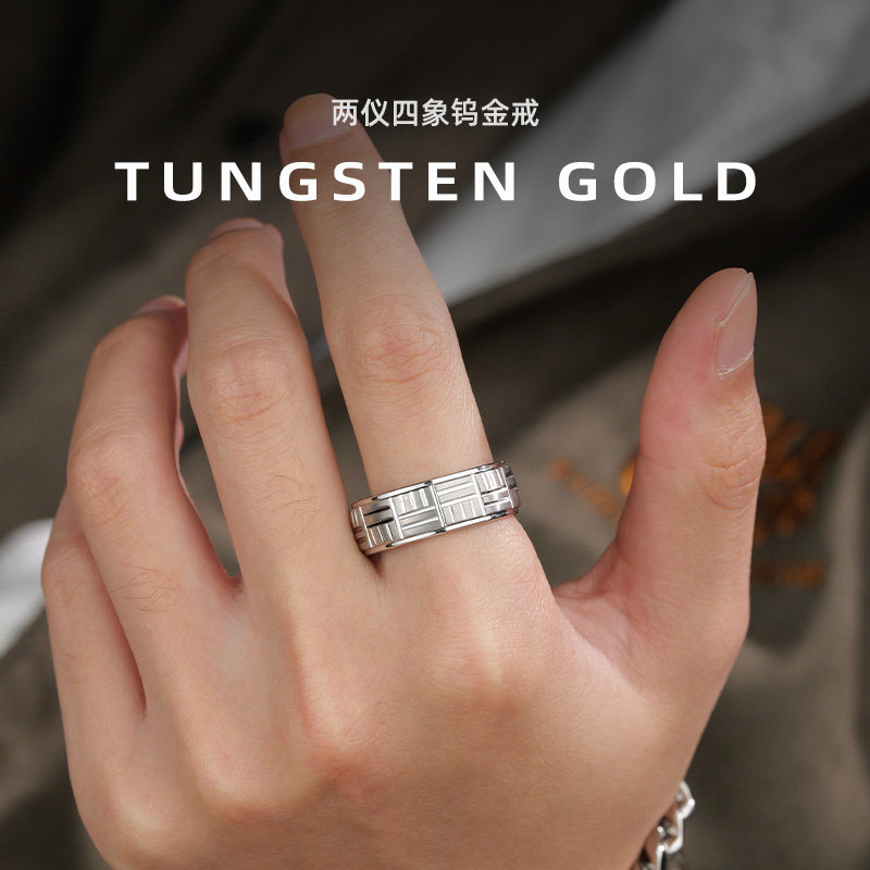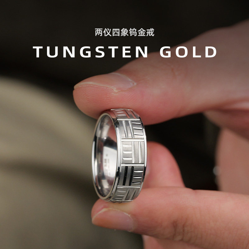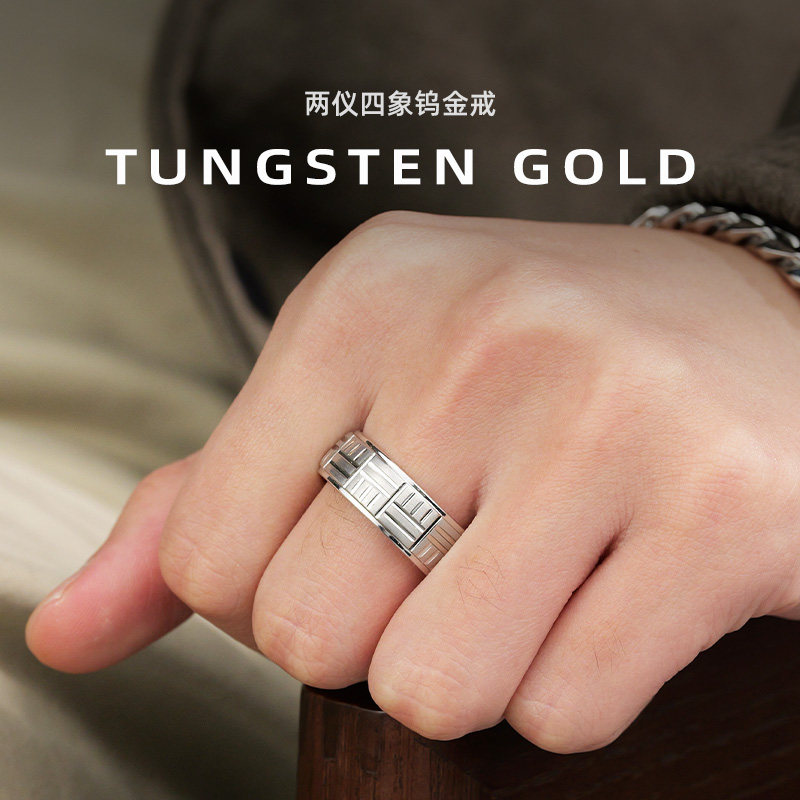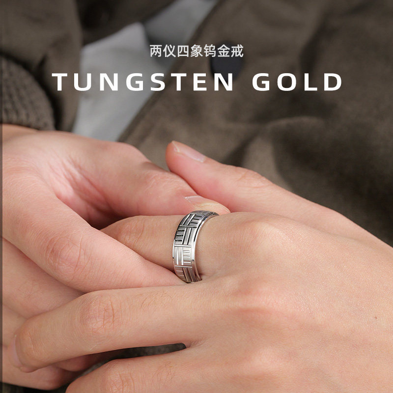 赤月钨金戒指欧美风男士个性时尚潮流大气可刻字食指潮男精致指环