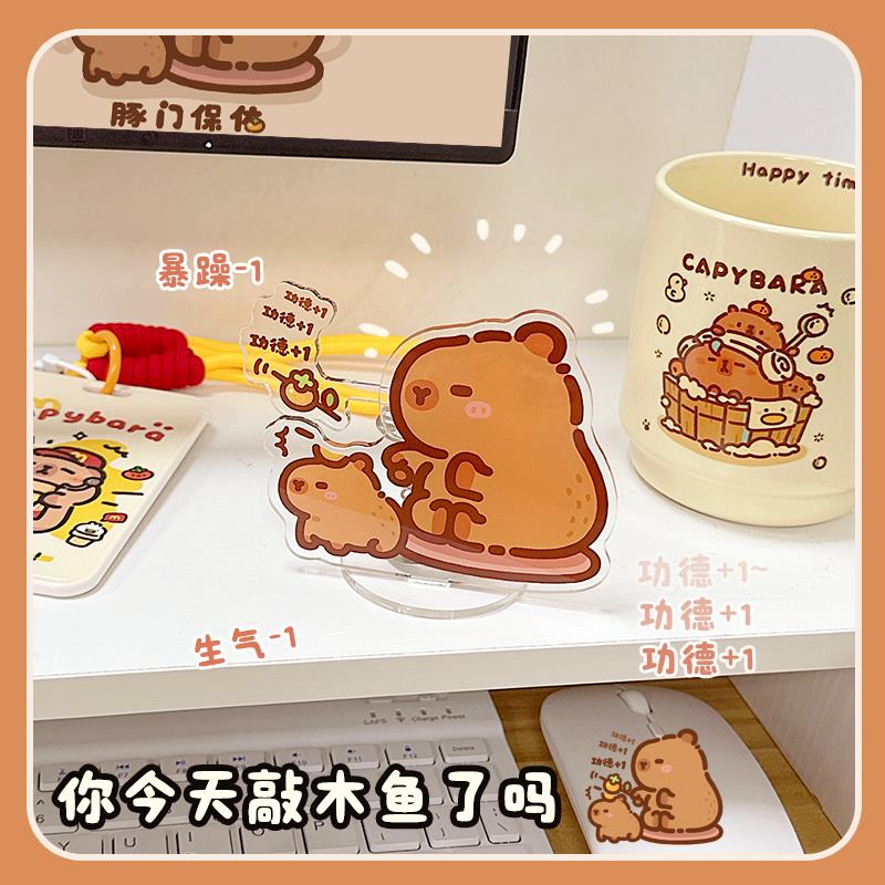 木鱼卡皮巴拉创意工位小摆件桌面打工人上班发疯解压摇摇乐亚克力