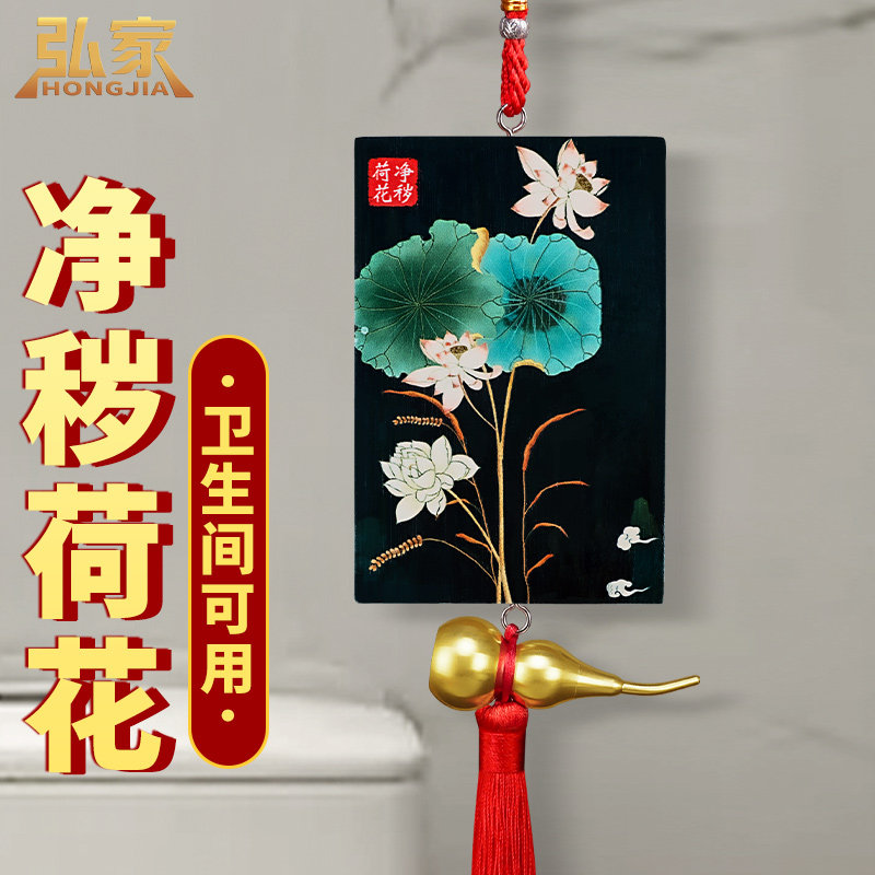 五帝钱卫生间荷花图大门对厕所卧室厨房门对门中国结葫芦装饰挂件
