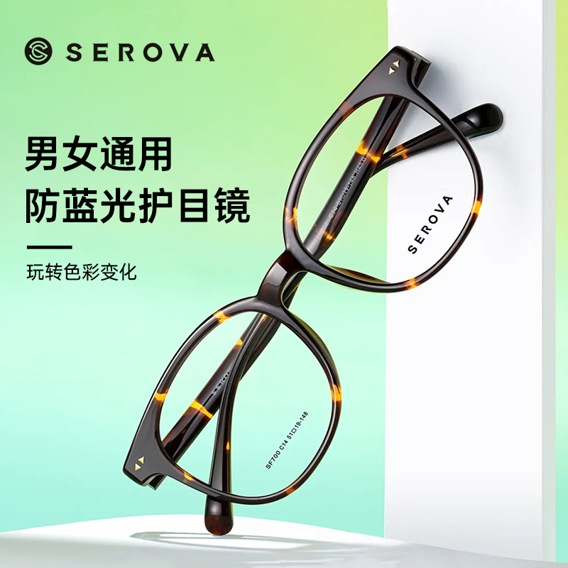 施洛华超轻玳瑁方框近视眼镜女可配度数防蓝光素颜变色镜片SF700