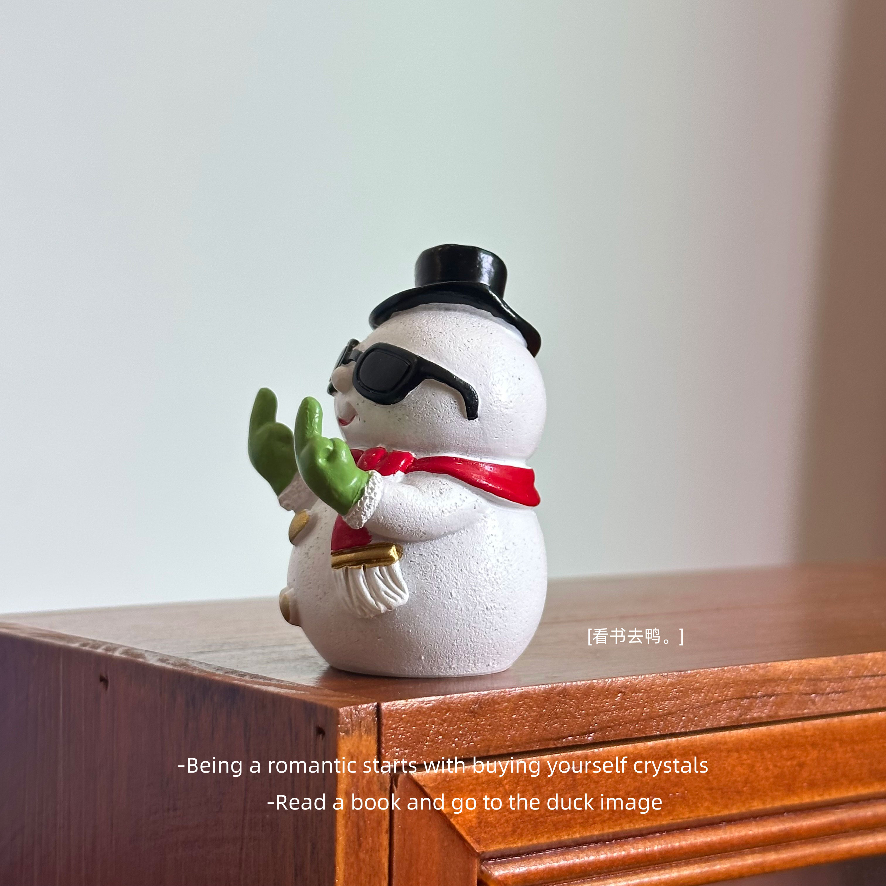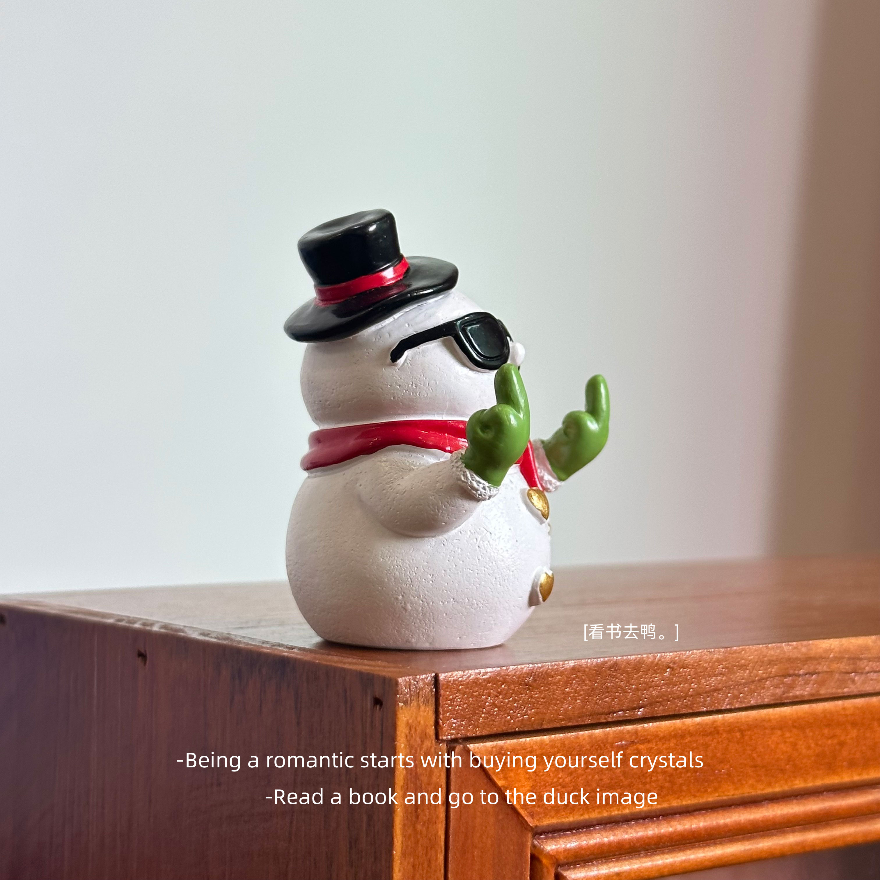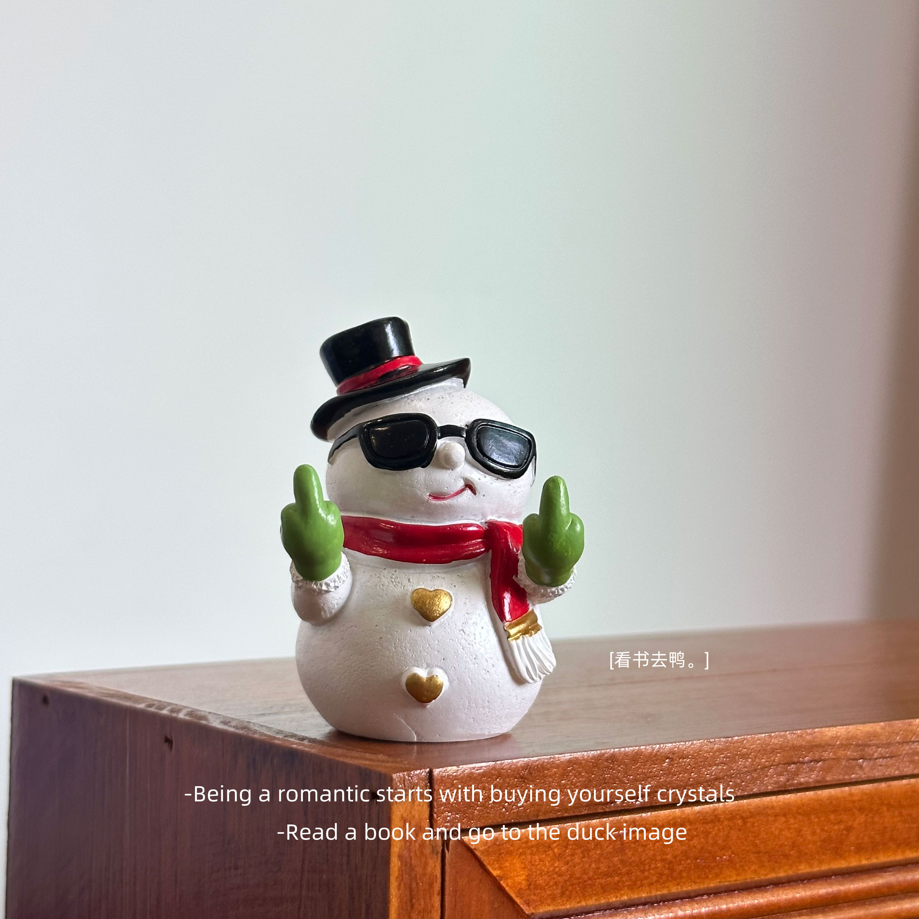 竖中指雪人 纯手工彩绘创意可爱万圣圣诞节迷你桌面摆件生日礼物