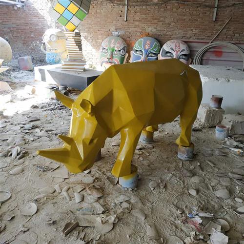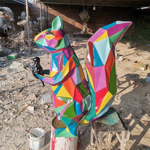 玻璃钢雕塑定制大型几何动物抽象块切面熊鹿兔子摆件户外园林景观
