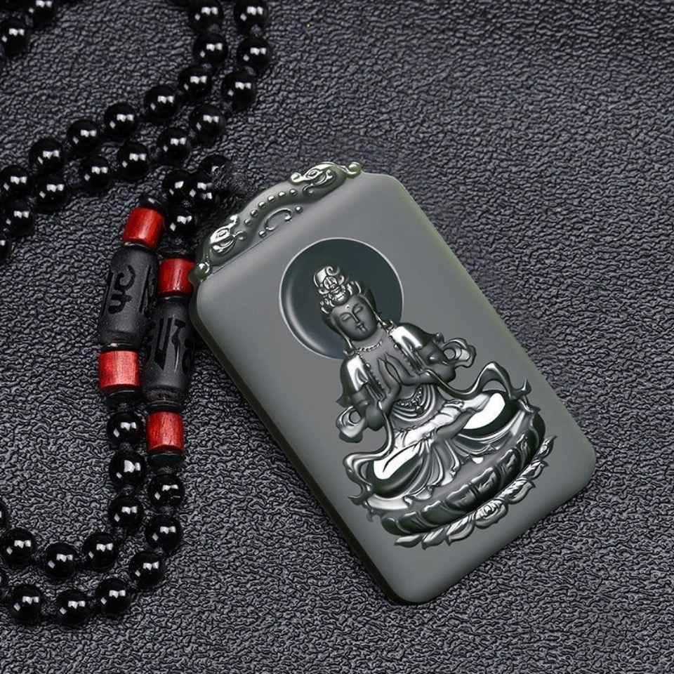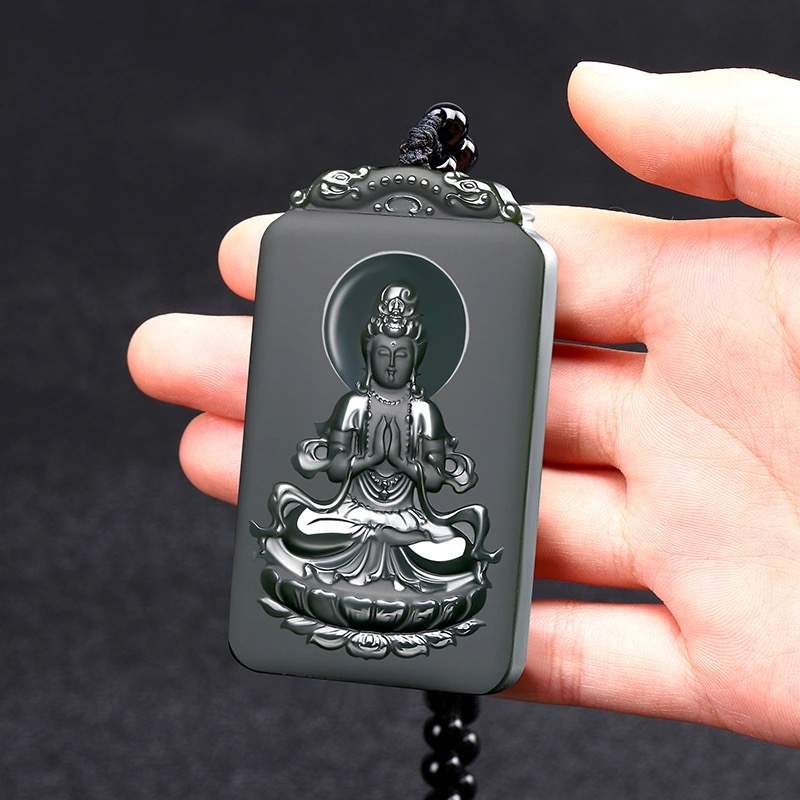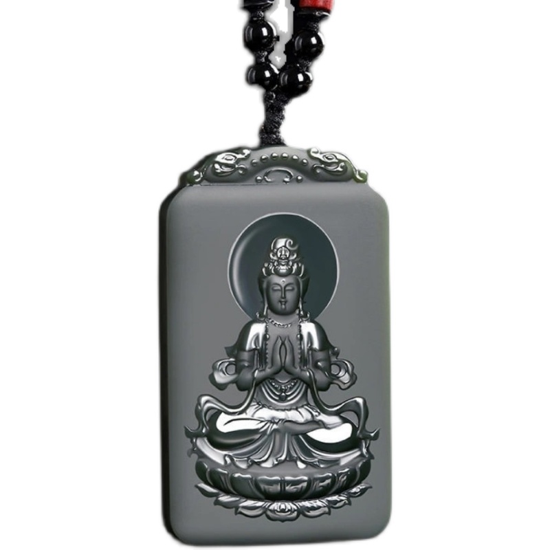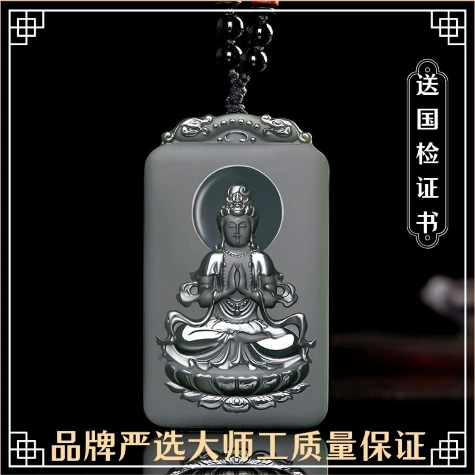新疆和田玉观音挂件男款天然青玉吊坠坐观音牌子莲花菩萨项链细料