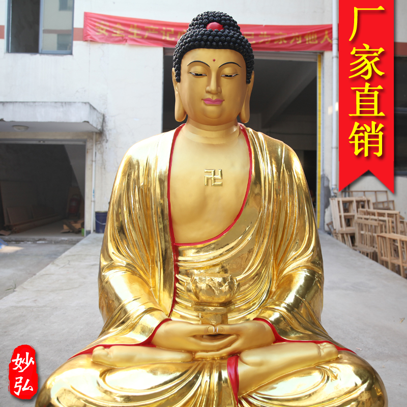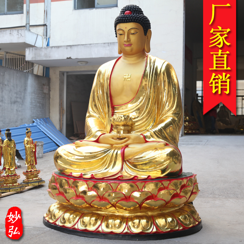 供奉寺庙阿弥陀佛 2米1如来佛祖释迦摩尼佛 贴金树脂玻璃钢三宝佛