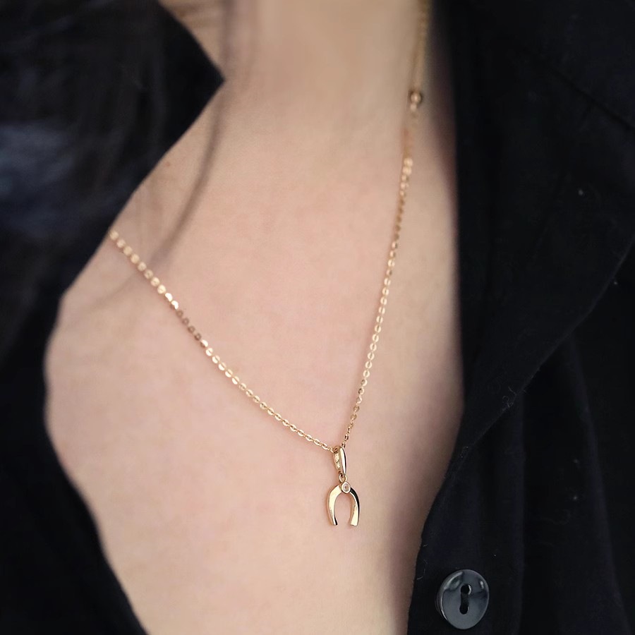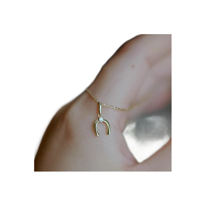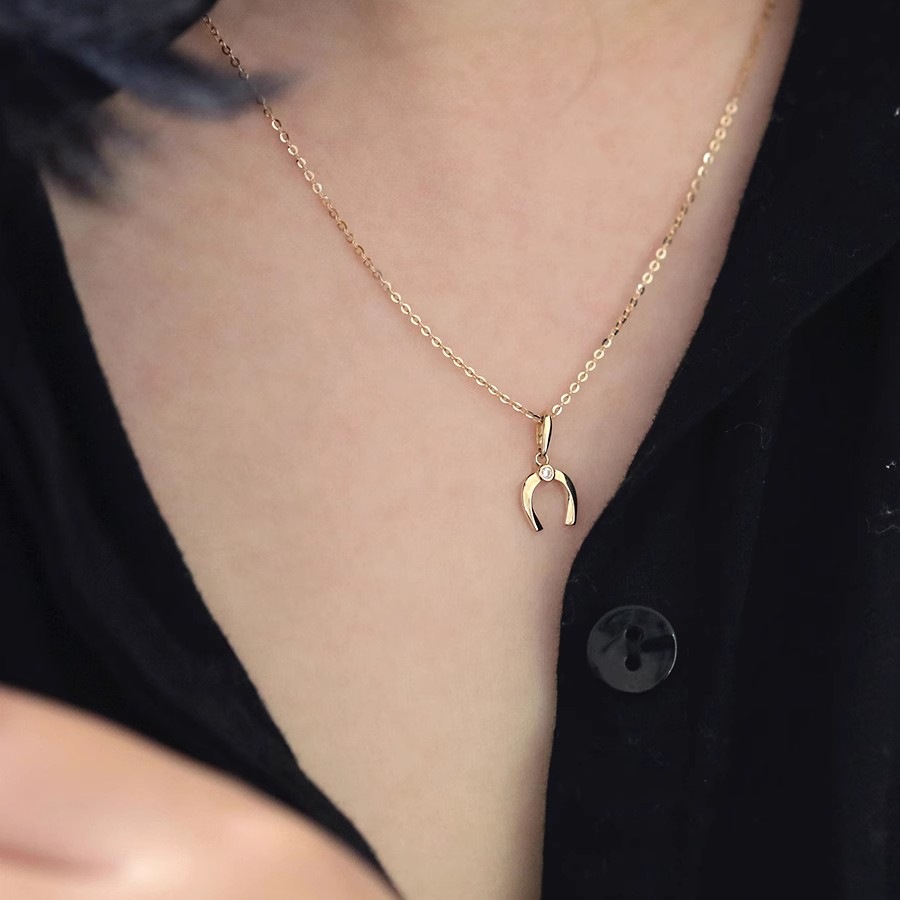 925纯银镀14k金U型马蹄造型镶嵌锆钻精致吊坠项坠简约风坠子女