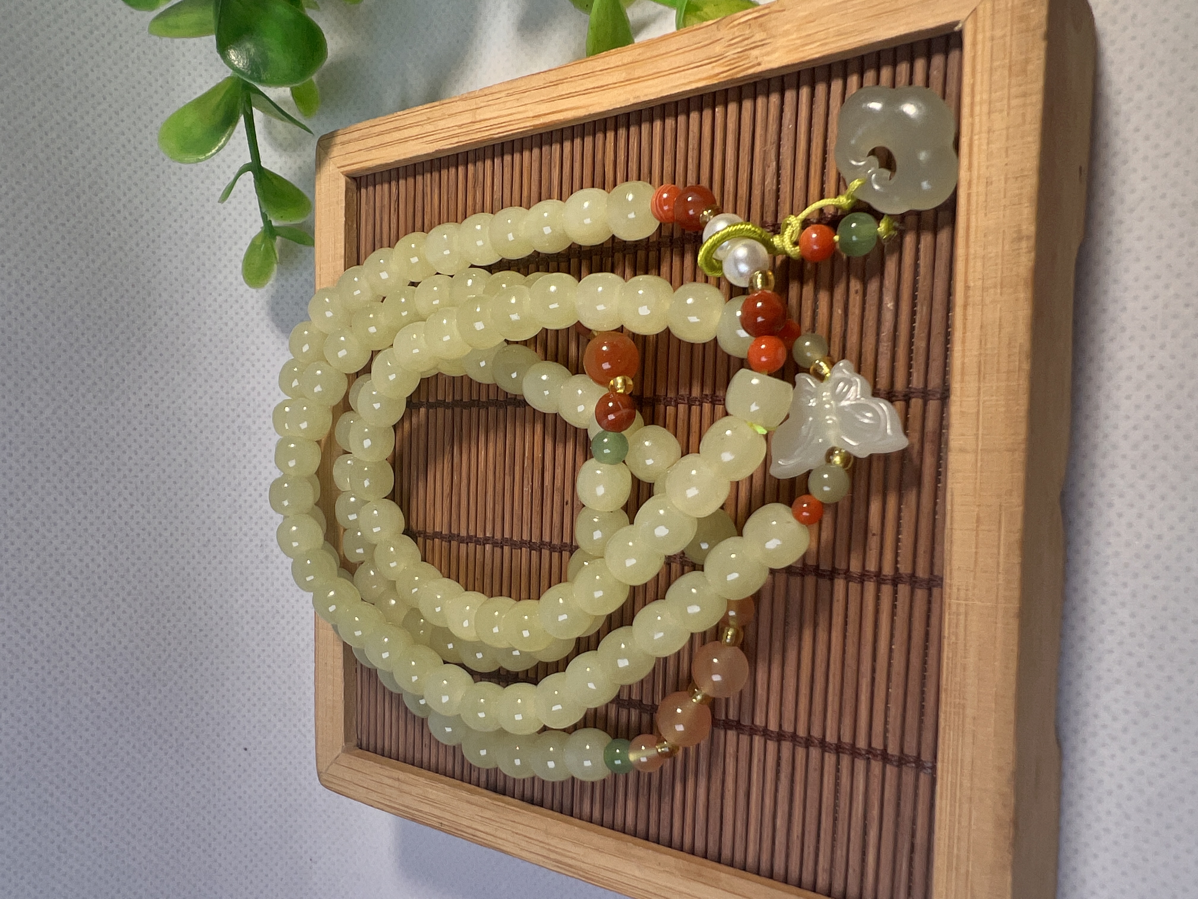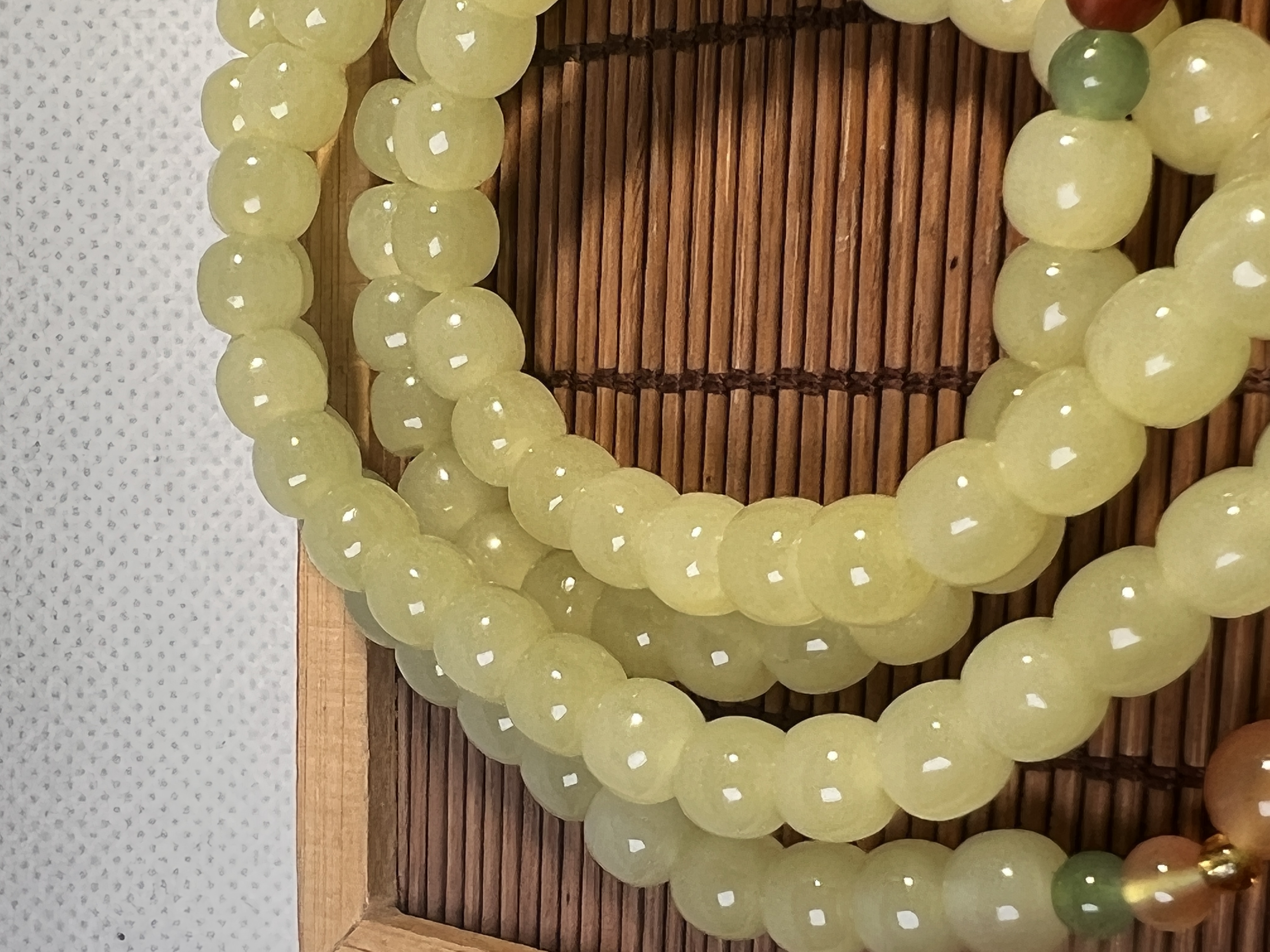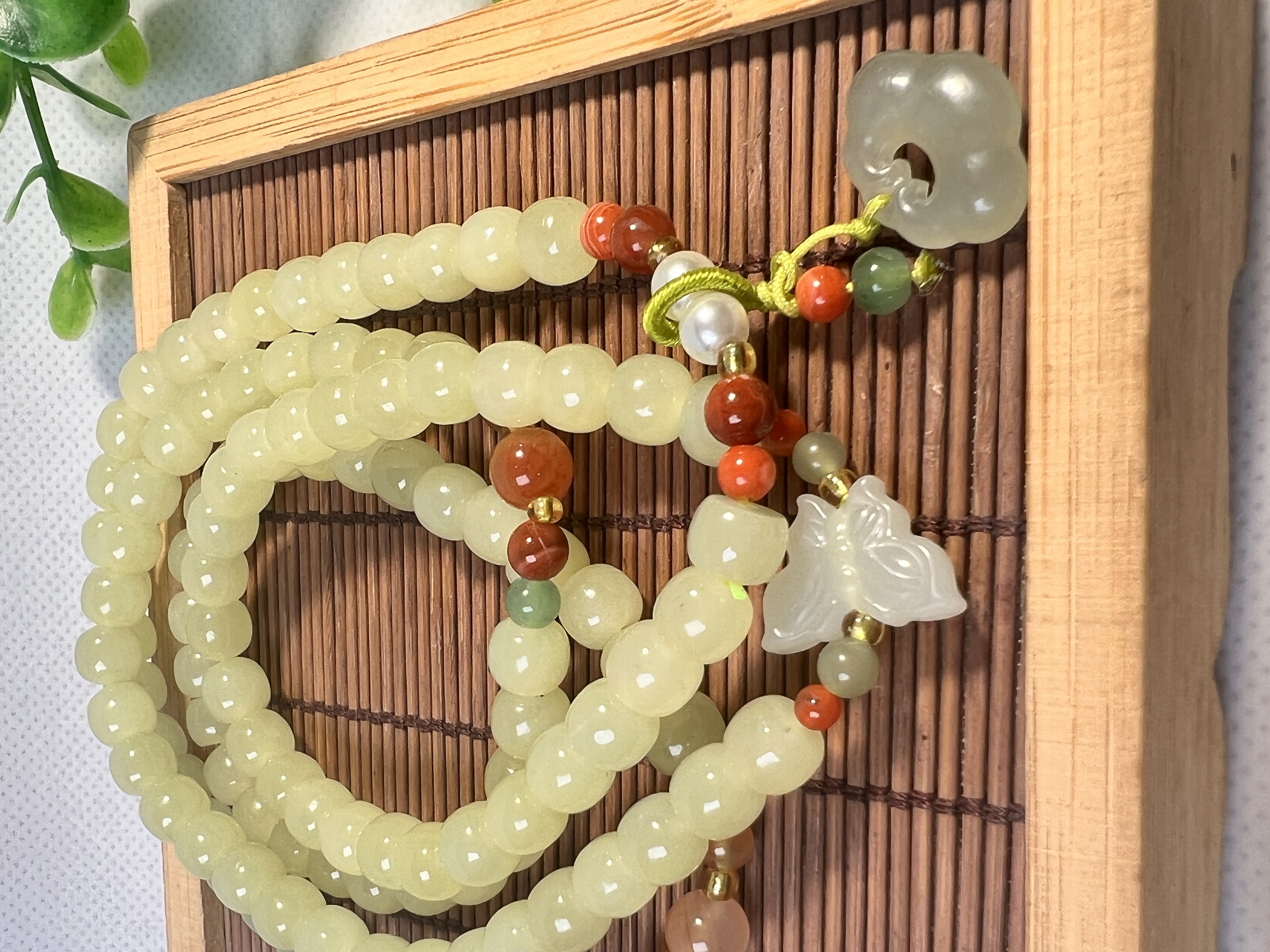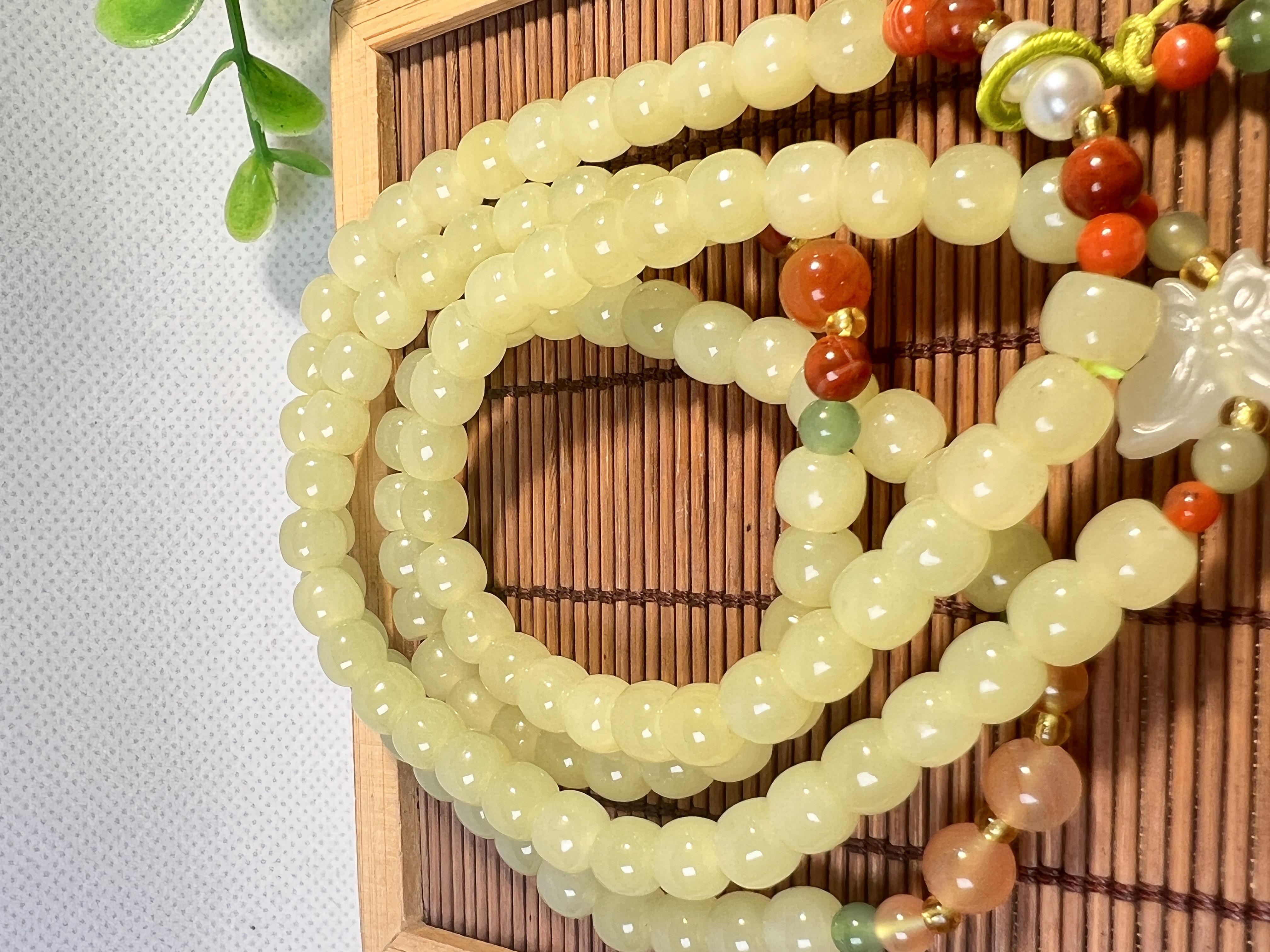 新疆和田玉黄玉多圈手链天然玉石若羌黄玉老型珠手串项链配证书