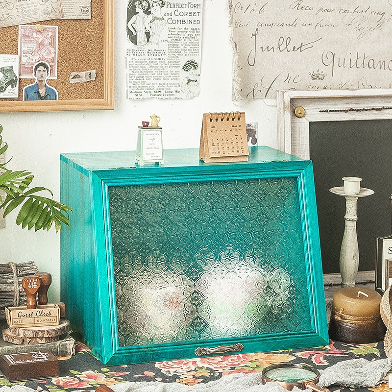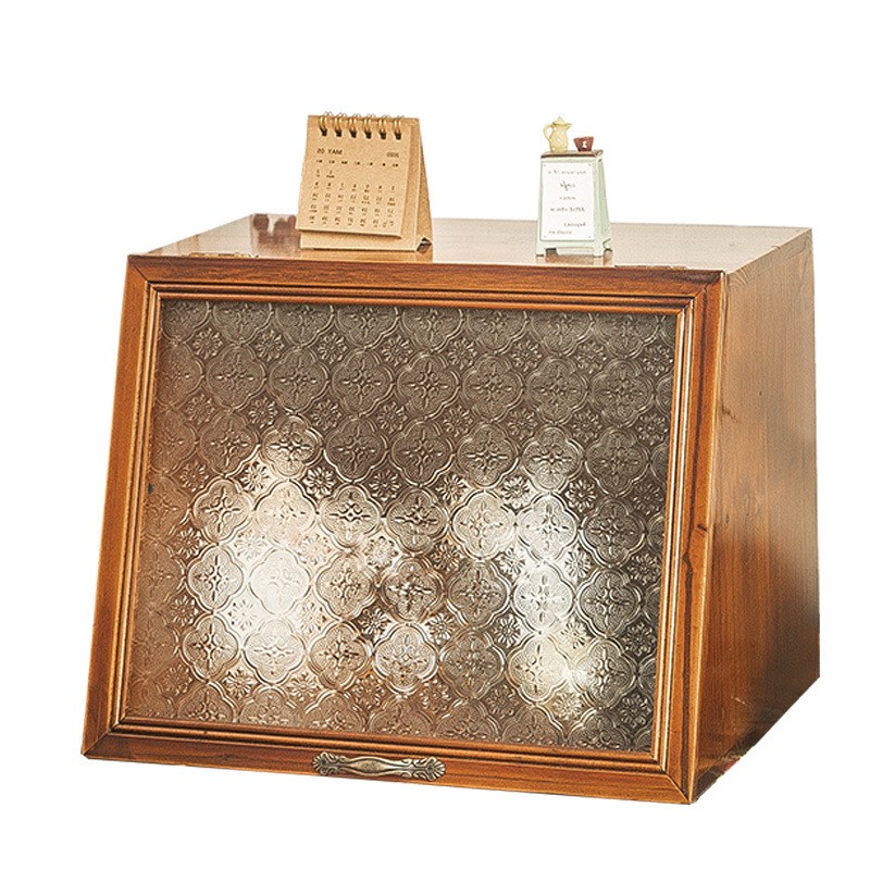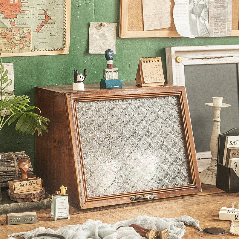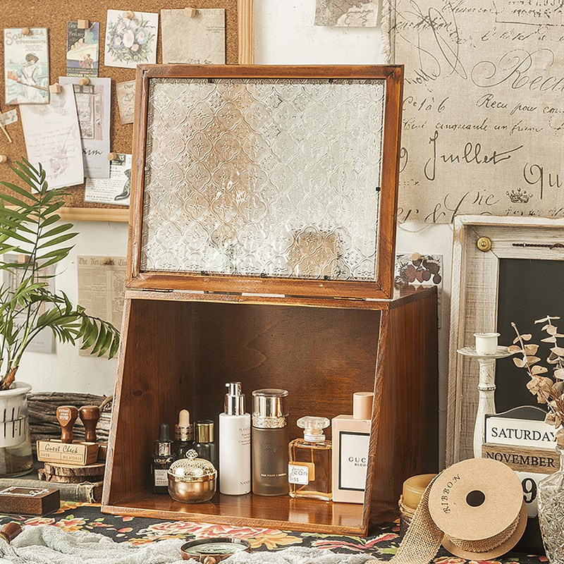 化妆品香水整理桌面收纳盒zakka实木杯子茶具翻盖玻璃防尘展示柜