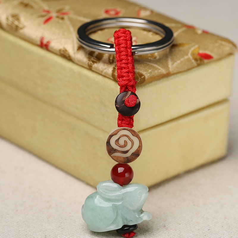 2024年属狗双兔护岁吉祥物兔天然翡翠玉石生肖兔子吊坠钥匙扣挂件
