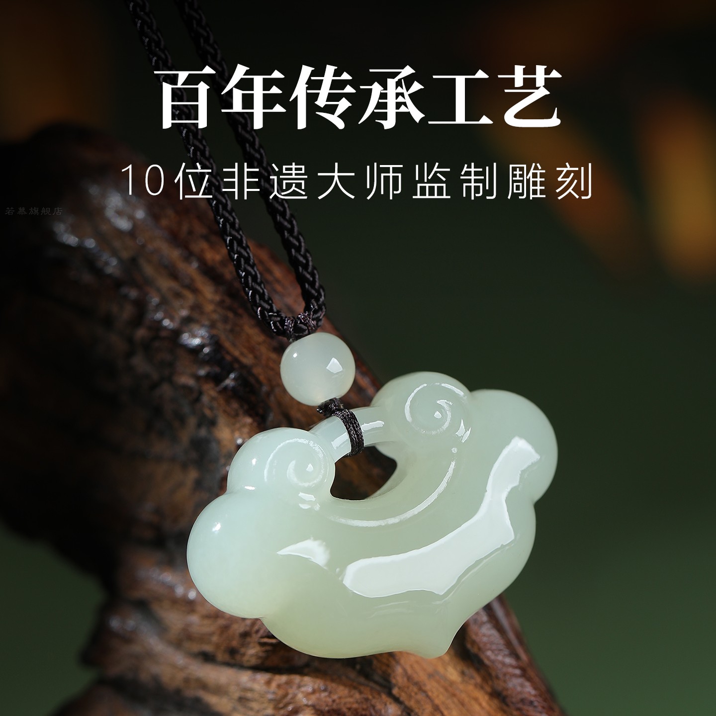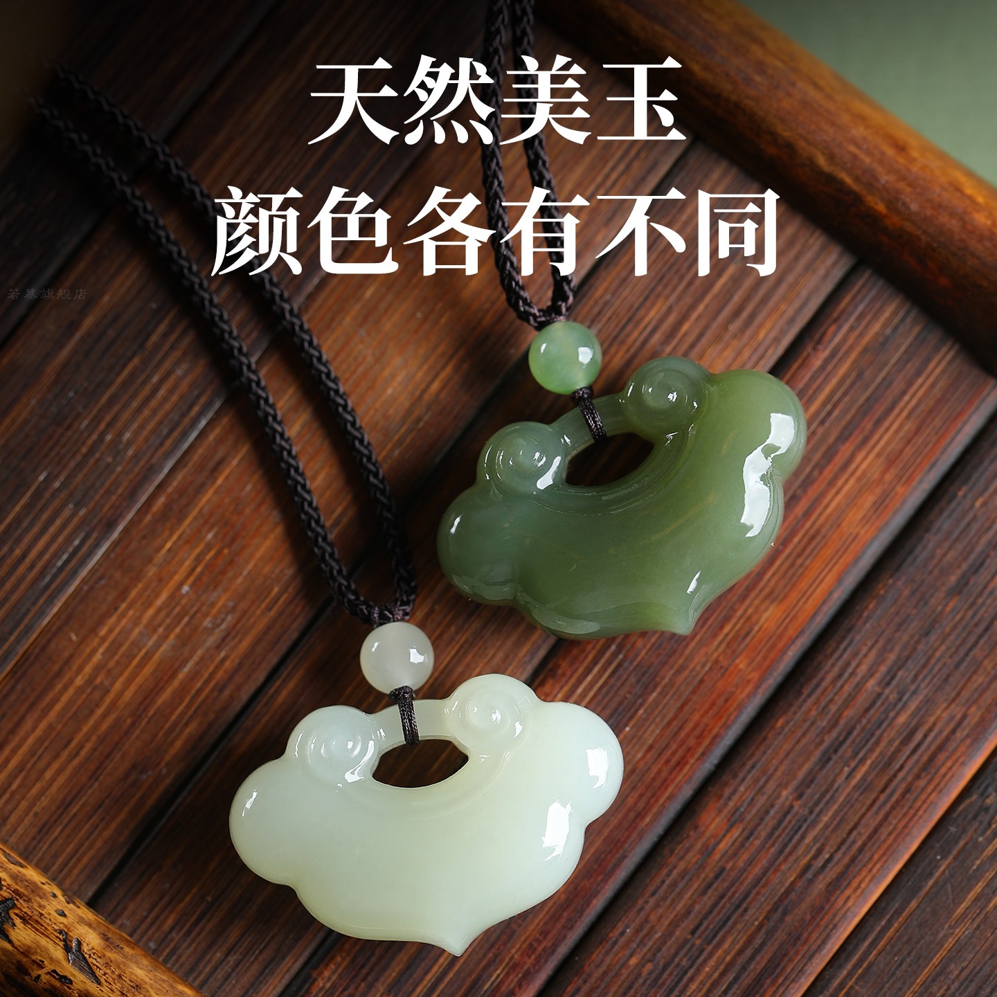 保真和田玉平安如意锁吊坠儿童玉石玉坠长命锁项链挂件男女护身符