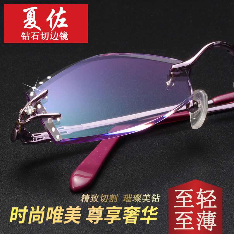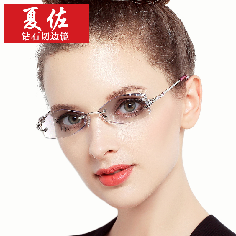 近视眼镜女无框钻石切边眼睛框镜架可配有度数变色防蓝光辐射镜片