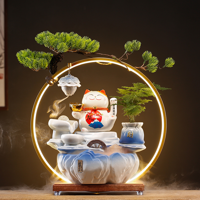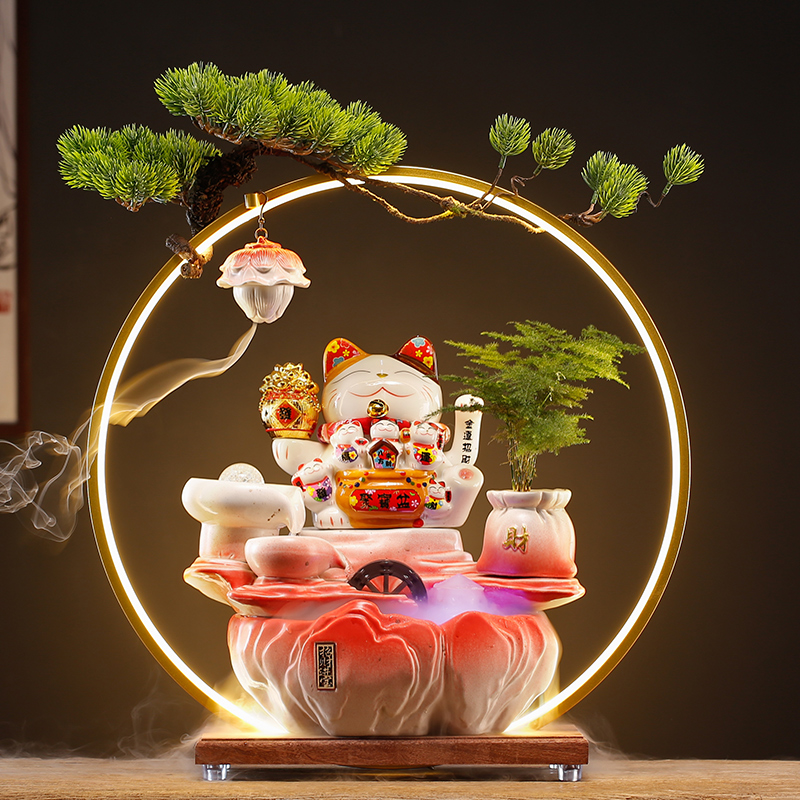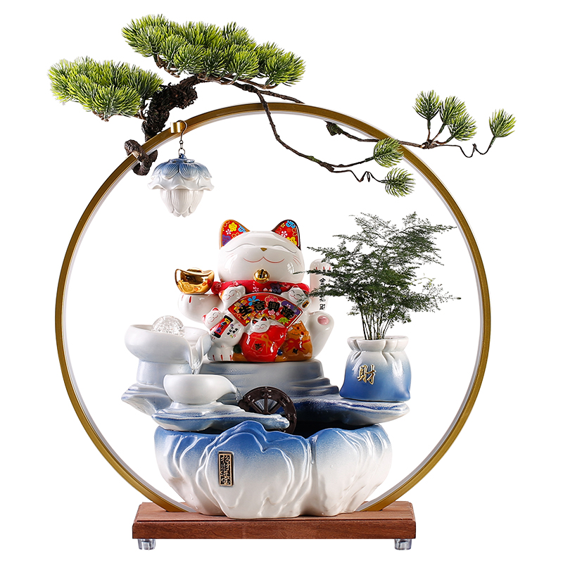 招财猫循环流水生财装饰摆件客厅发财猫公司前台店V铺桌面开业礼